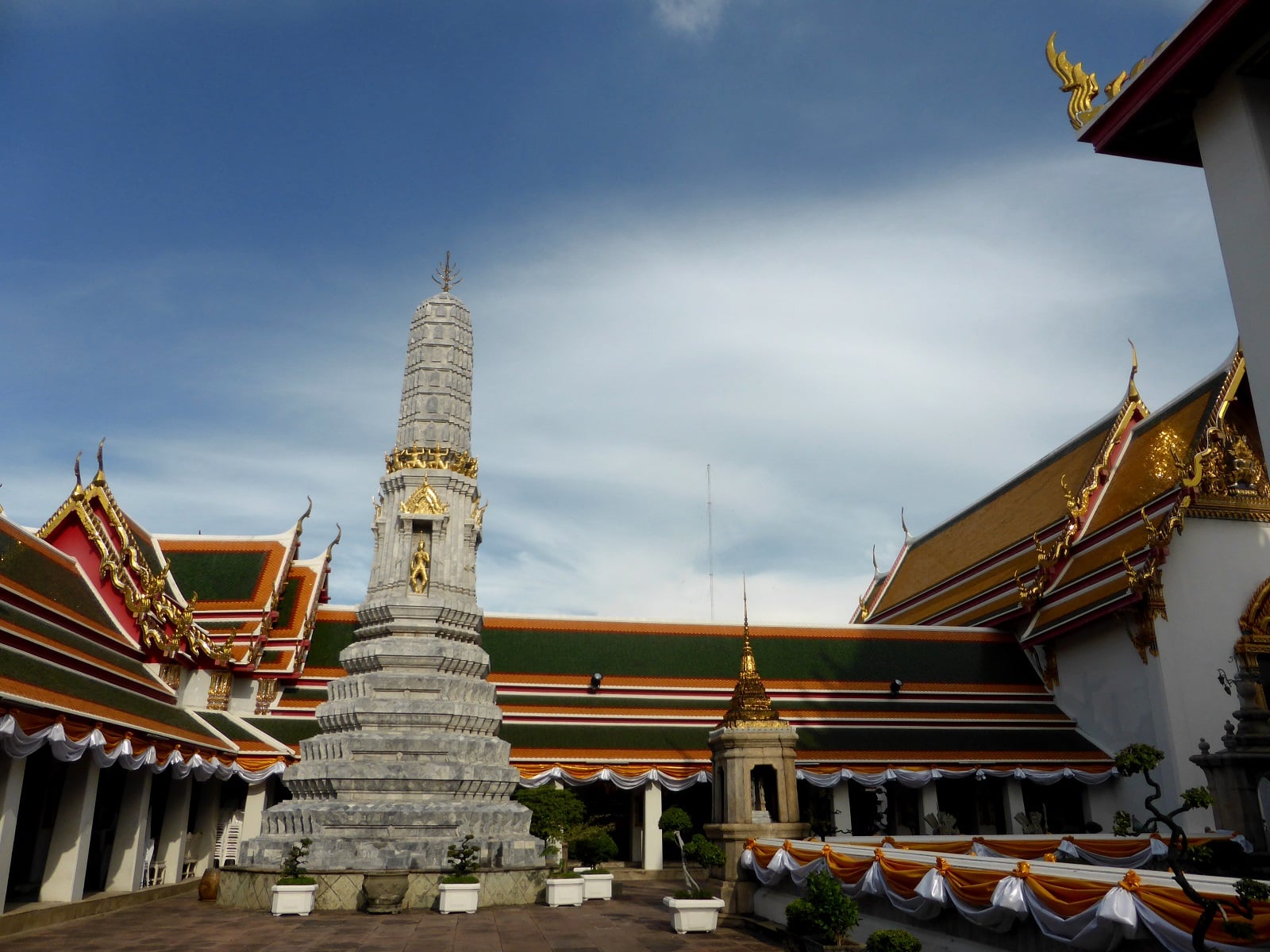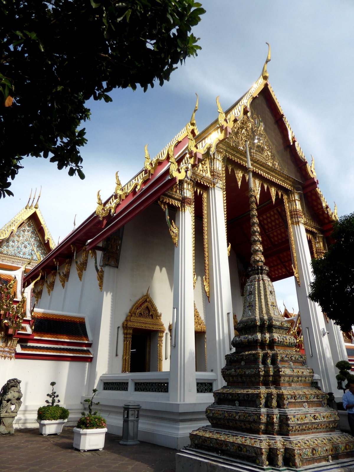 Situé à proximité, ce temple est celui du fameux Bouddha couché, il y a moins de monde et l’atmosphère est plus respirable. Là encore, nous sommes frappés par la beauté des constructions et la sérénité qui se dégage de ces lieux.