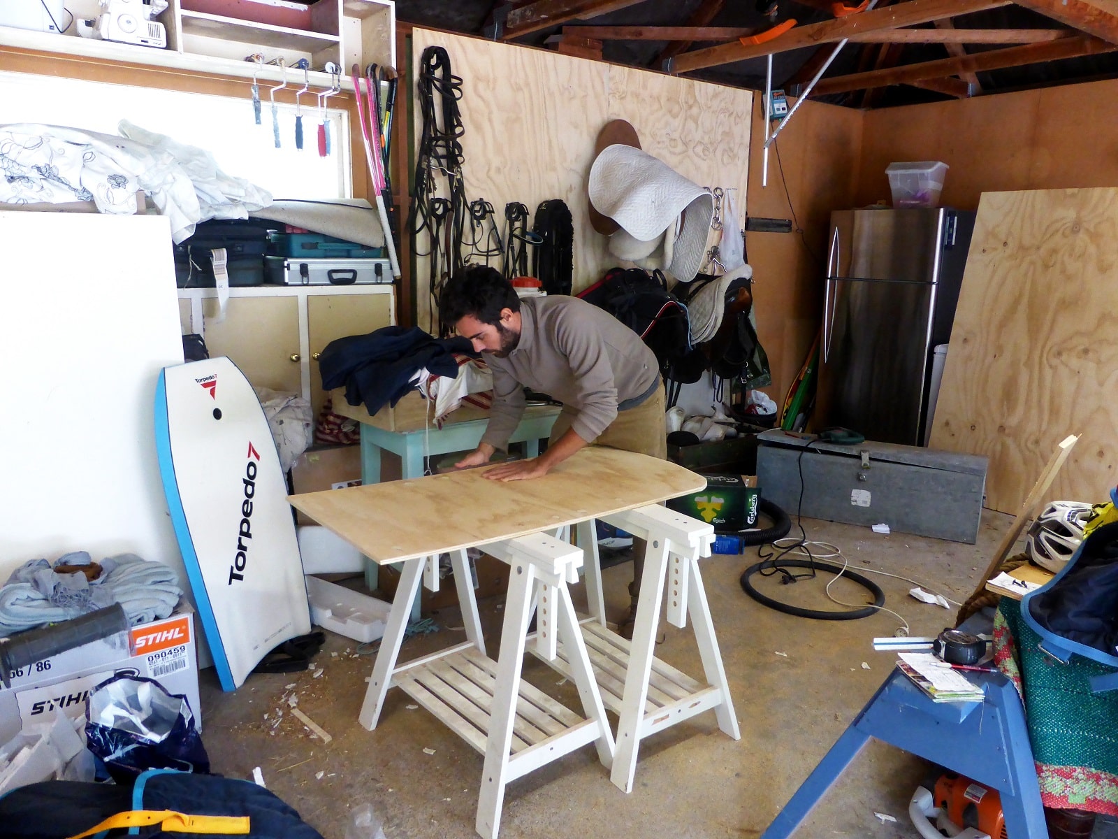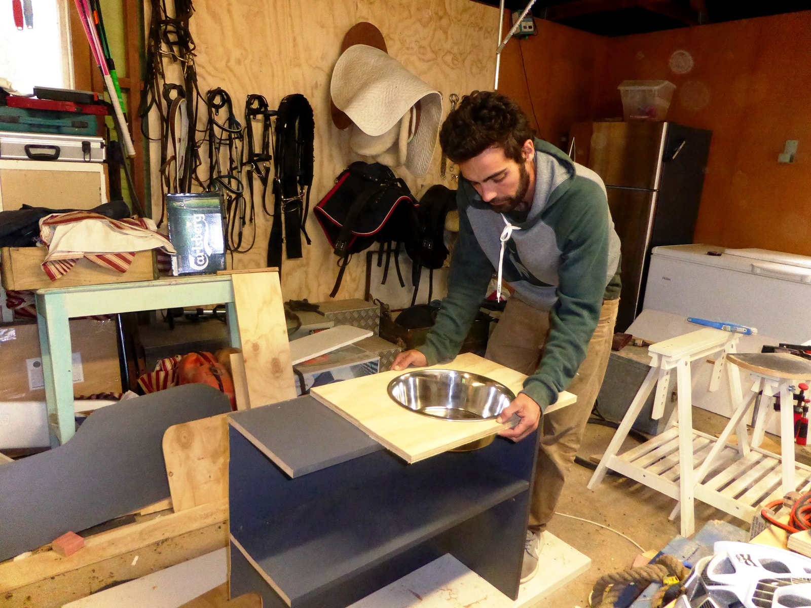 Séduit par notre projet, un des vendeurs nous a gentiment proposé son aide en nous permettant d’aller chez lui et d’utiliser ses propres outils! Ainsi, nous avons pu rester dans le jardin de cette famille avec à notre disposition tout l’équipement nécessaire à l’aménagement du van.