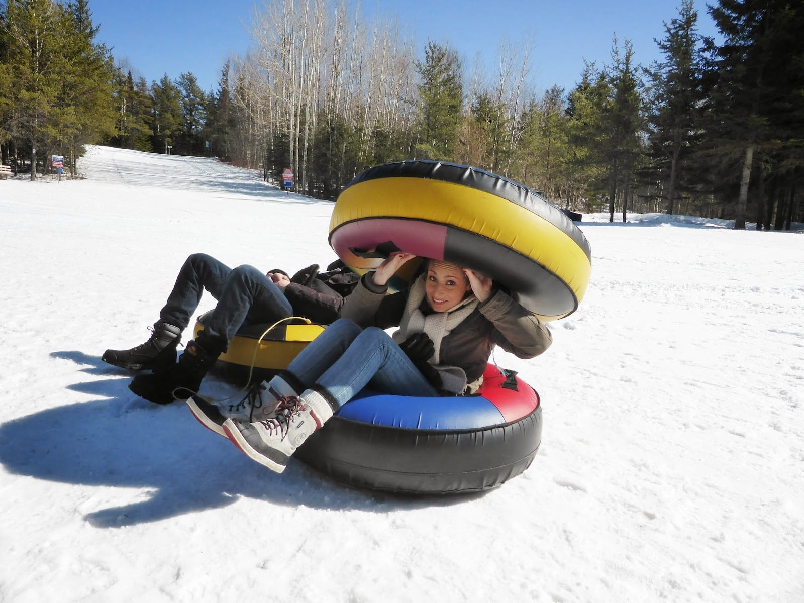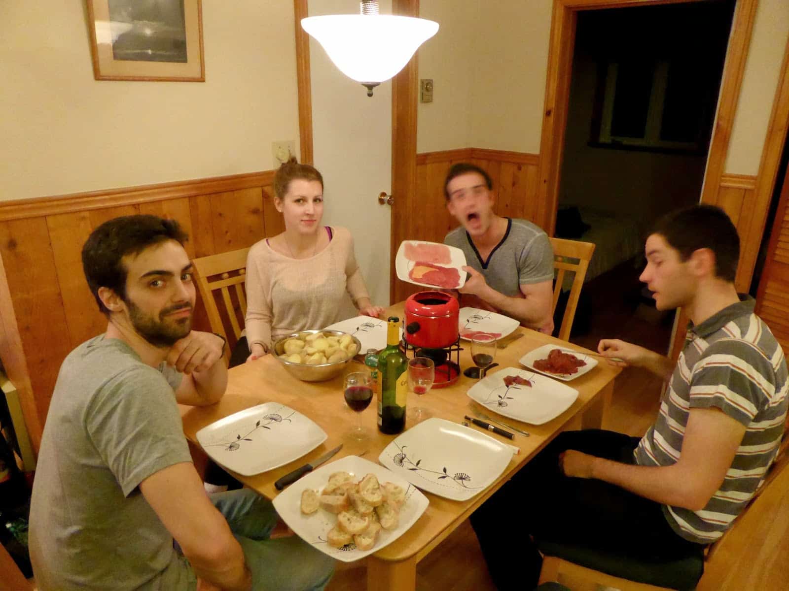 Au-delà de s’organiser de vrais festins, nous avons aussi pris le temps de faire une balade en forêt chaussés d’inévitables raquettes. De même, nous avons testé les fameuses « glissades », dont le but est de dévaler des pentes sur des bouées.