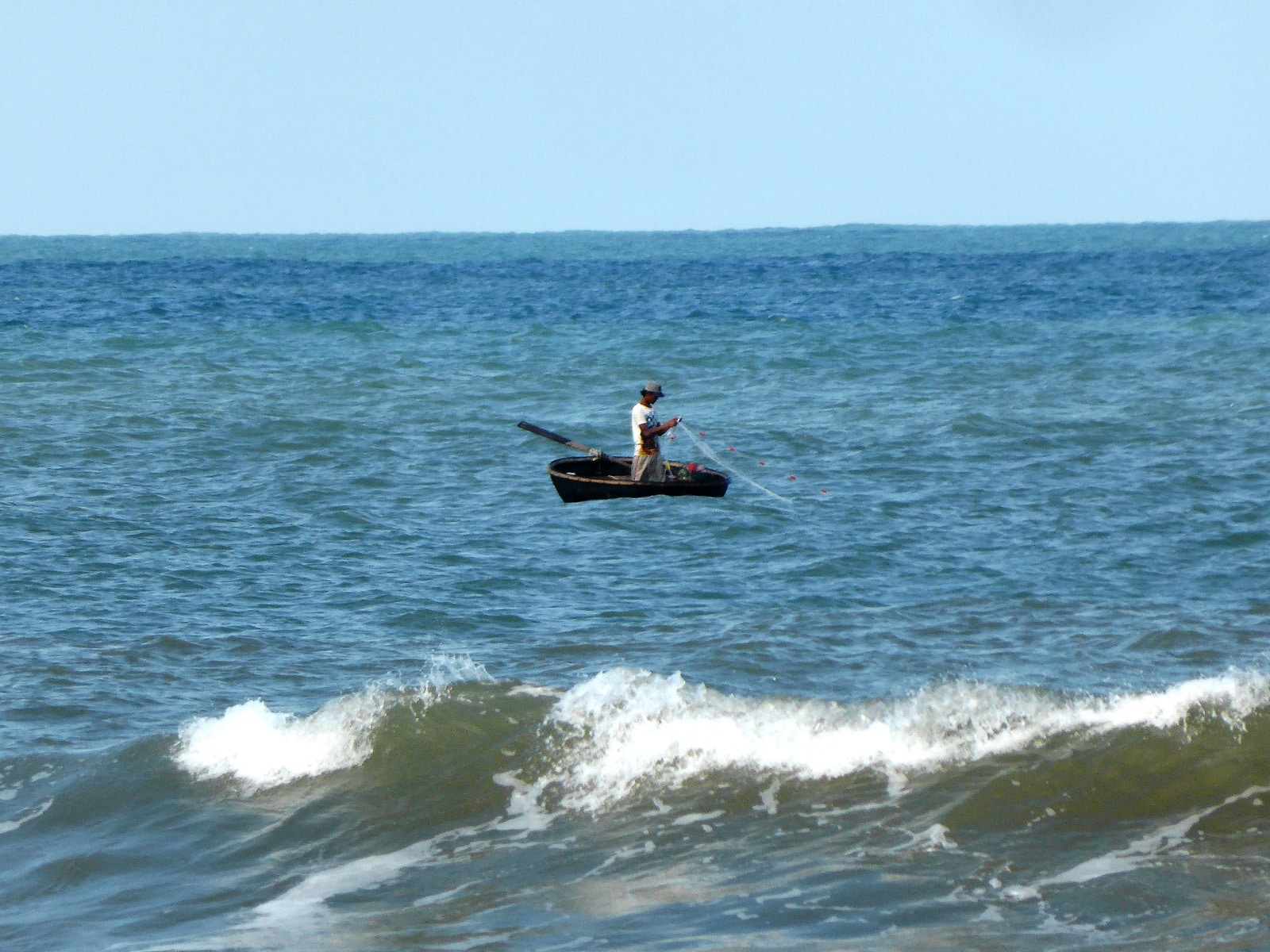 Nous arrivons à l’extrémité nord dans un petit village de pêcheur, sans touristes. On s’arrête pour manger des beignets de calamars, la plage est quasiment déserte.
