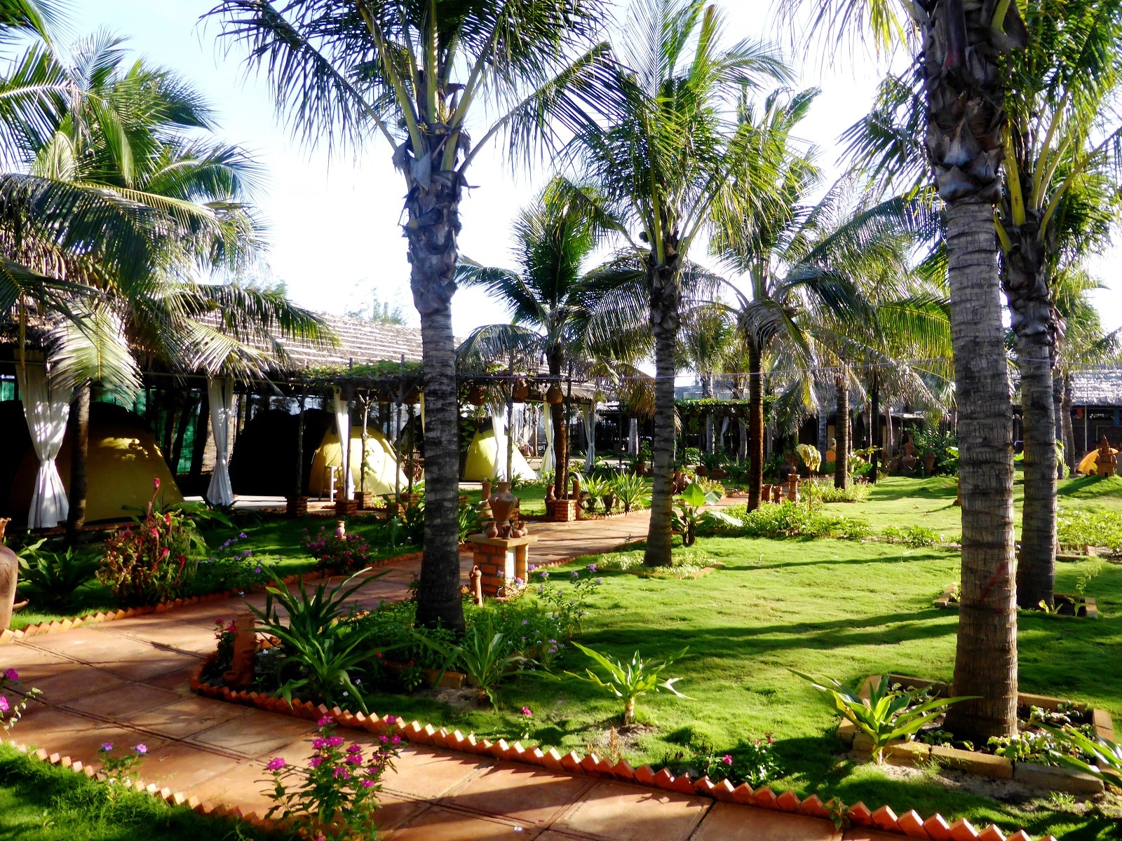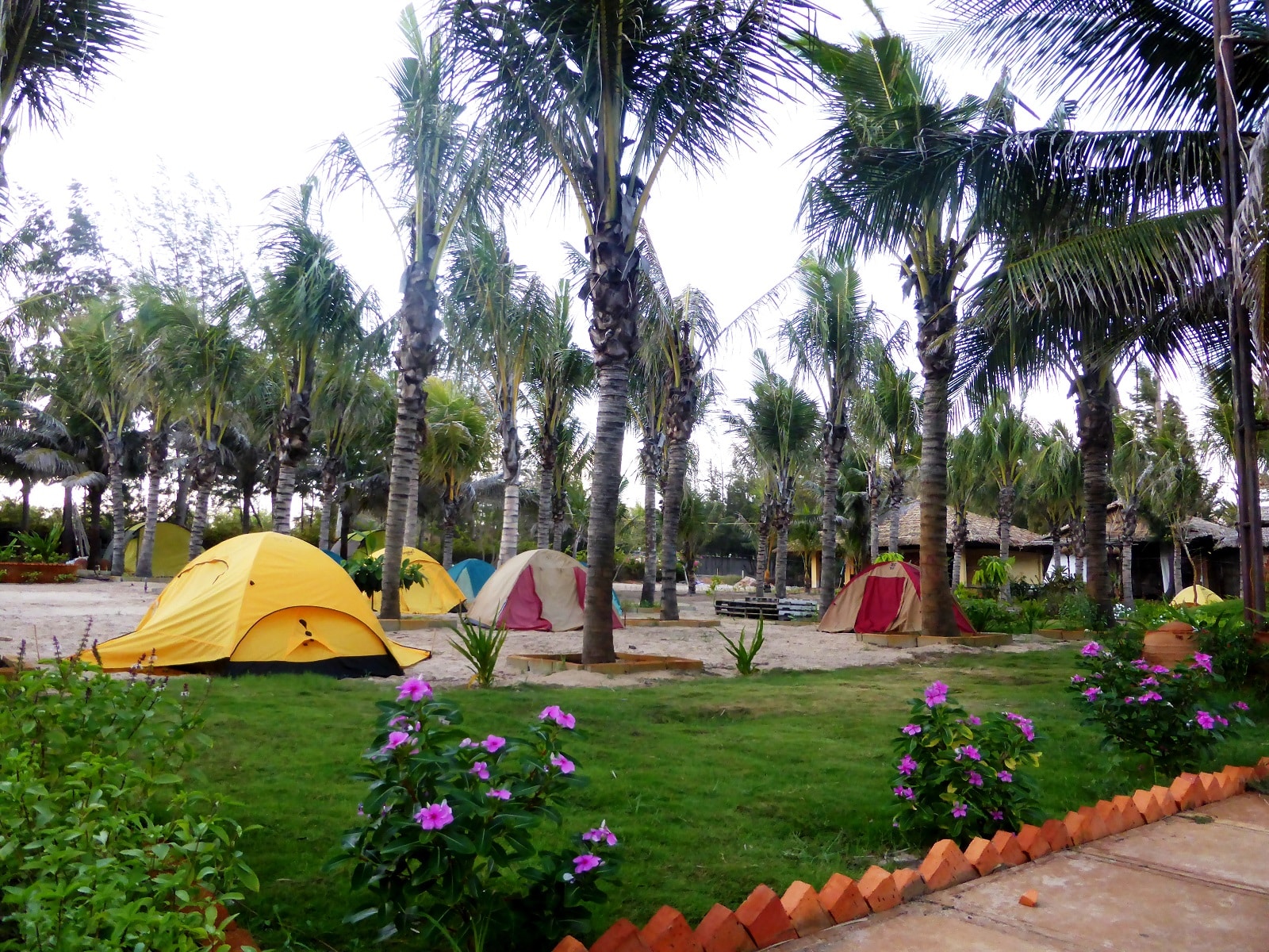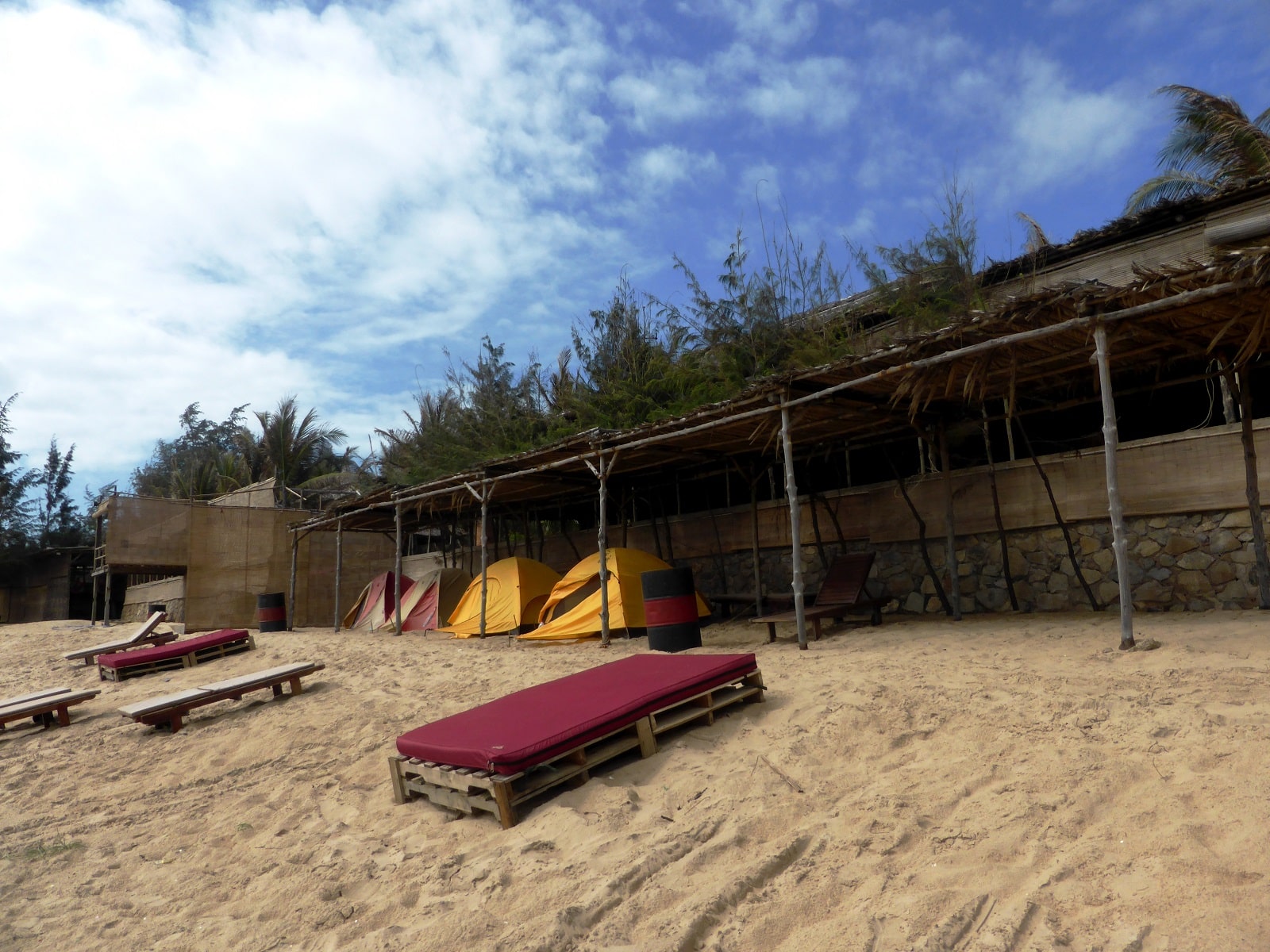 Suivant les conseils de voyageurs rencontrés à Hoi An nous nous arrêtons au Long Son Beach Resort. Et on ne le regrettera pas! Cet un grand espace aménagé au bord de la plage qui propose de faire du camping au bord pour 4 $ par personne en tente.