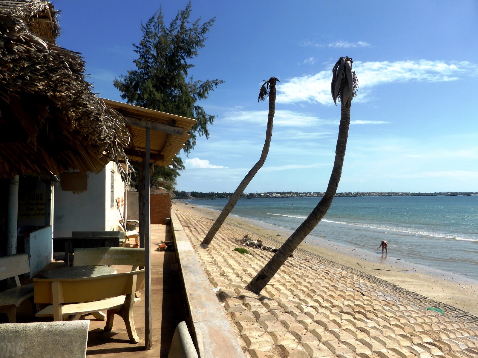 Après avoir passé la nuit dans le bus depuis Tam Coc, nous arrivons enfin sur ces fameuses plages du Sud Vietnam. Nous allons à l’hôtel Vin Huy, un peu excentré du centre qui propose des chambres pour trois à 300 000 dongs.