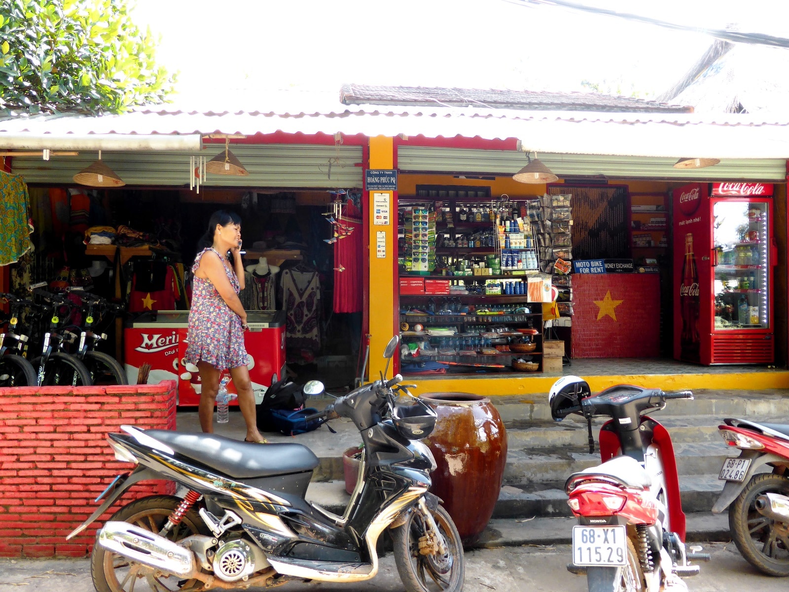 Nous louons des scooters pour l’après midi (150 000 les deux) en face de l’hôtel. C’est le meilleur moyen pour partir à la découverte de la rivière et des plages!