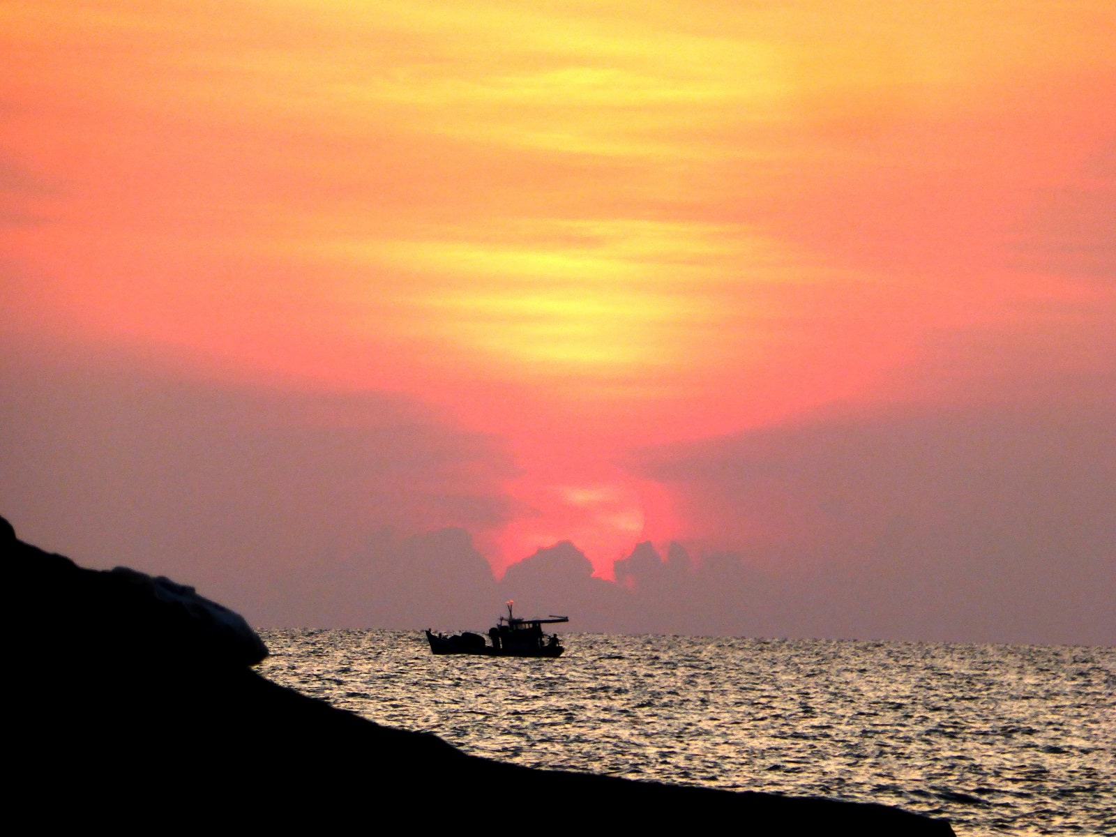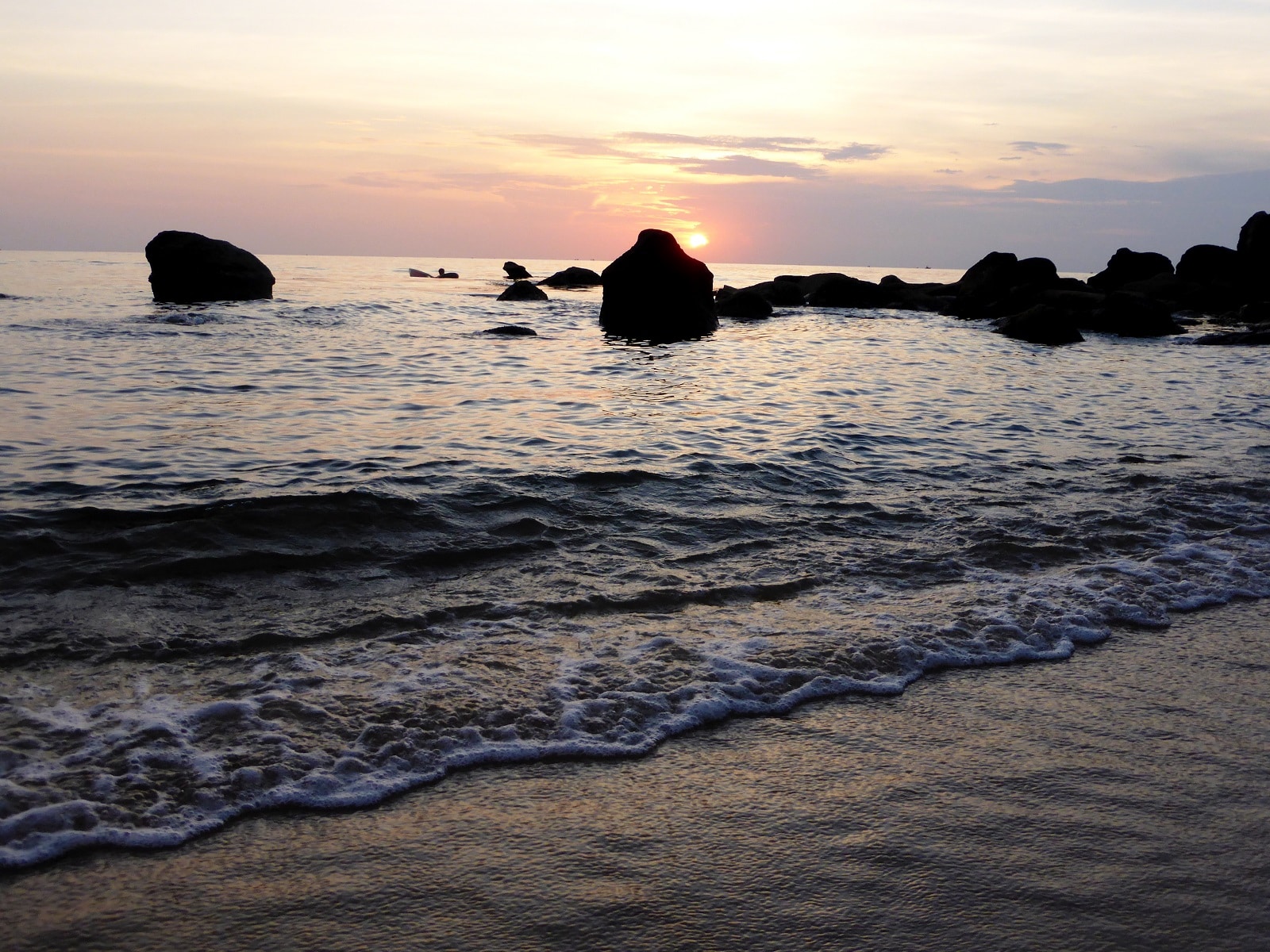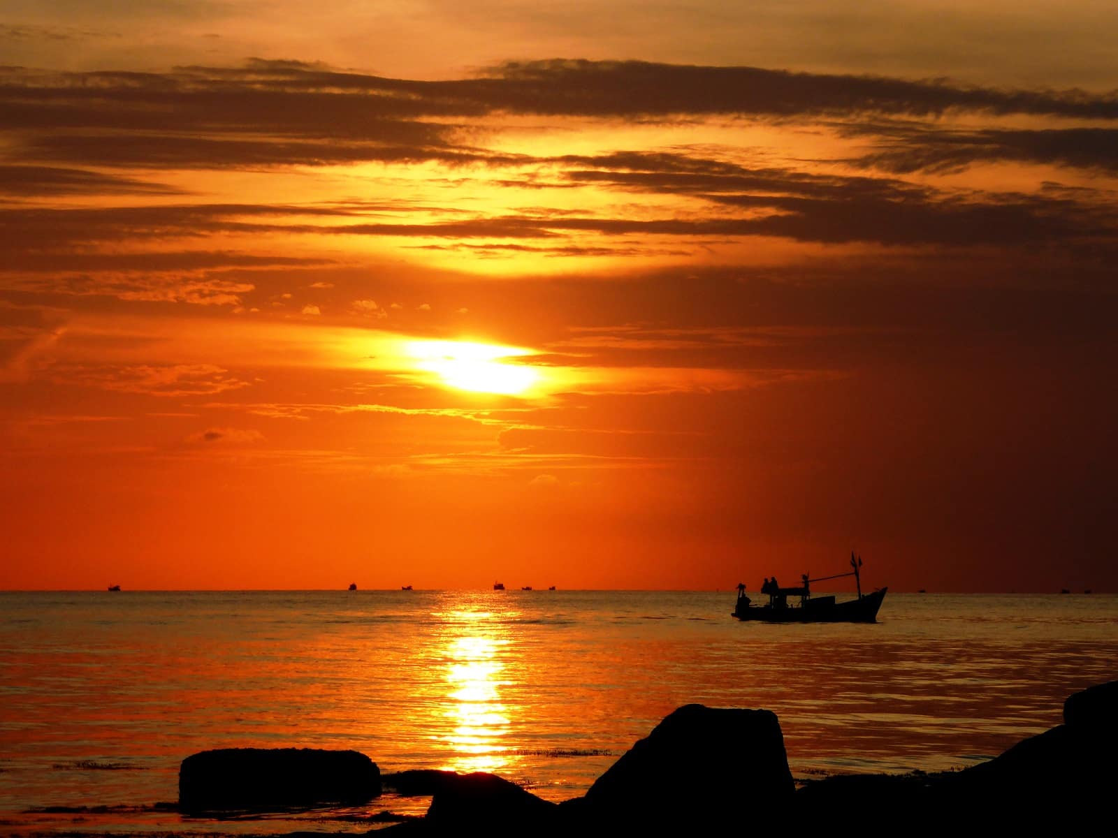 Nous passerons l’après-midi avec eux à boire et rigoler, on se baignera même dans la rivière. Malgré la barrière de la langue nous avons réussi à échanger et à passer un super moment ! En fin d’après-midi, nous prenons la direction de la plage pour admirer le coucher de soleil et voir les bateaux de pêcheurs s’allumer à mesure que la nuit tombe. Très beau spectacle!