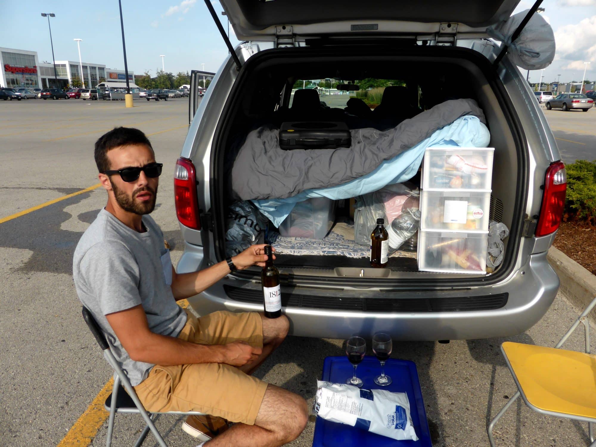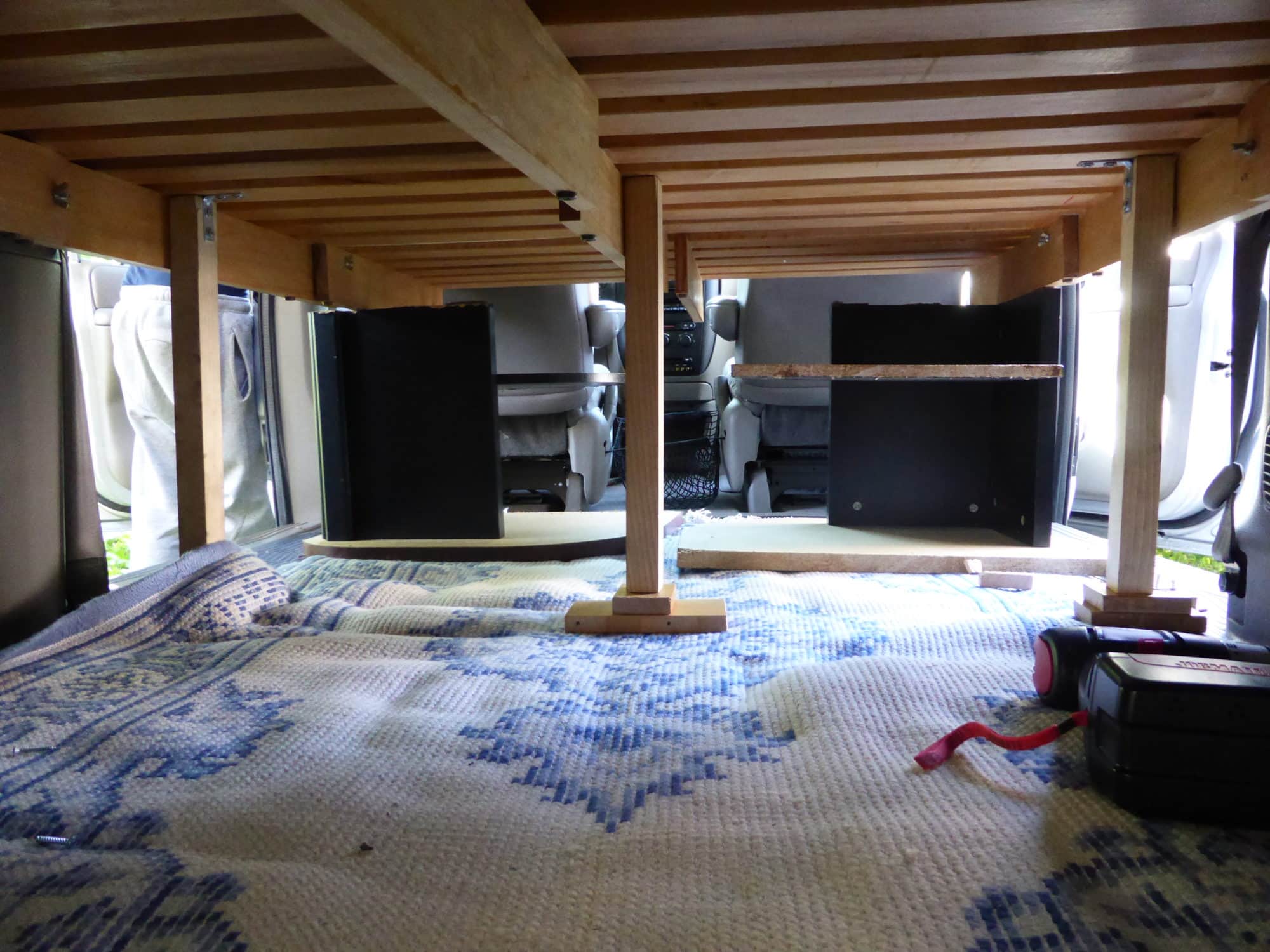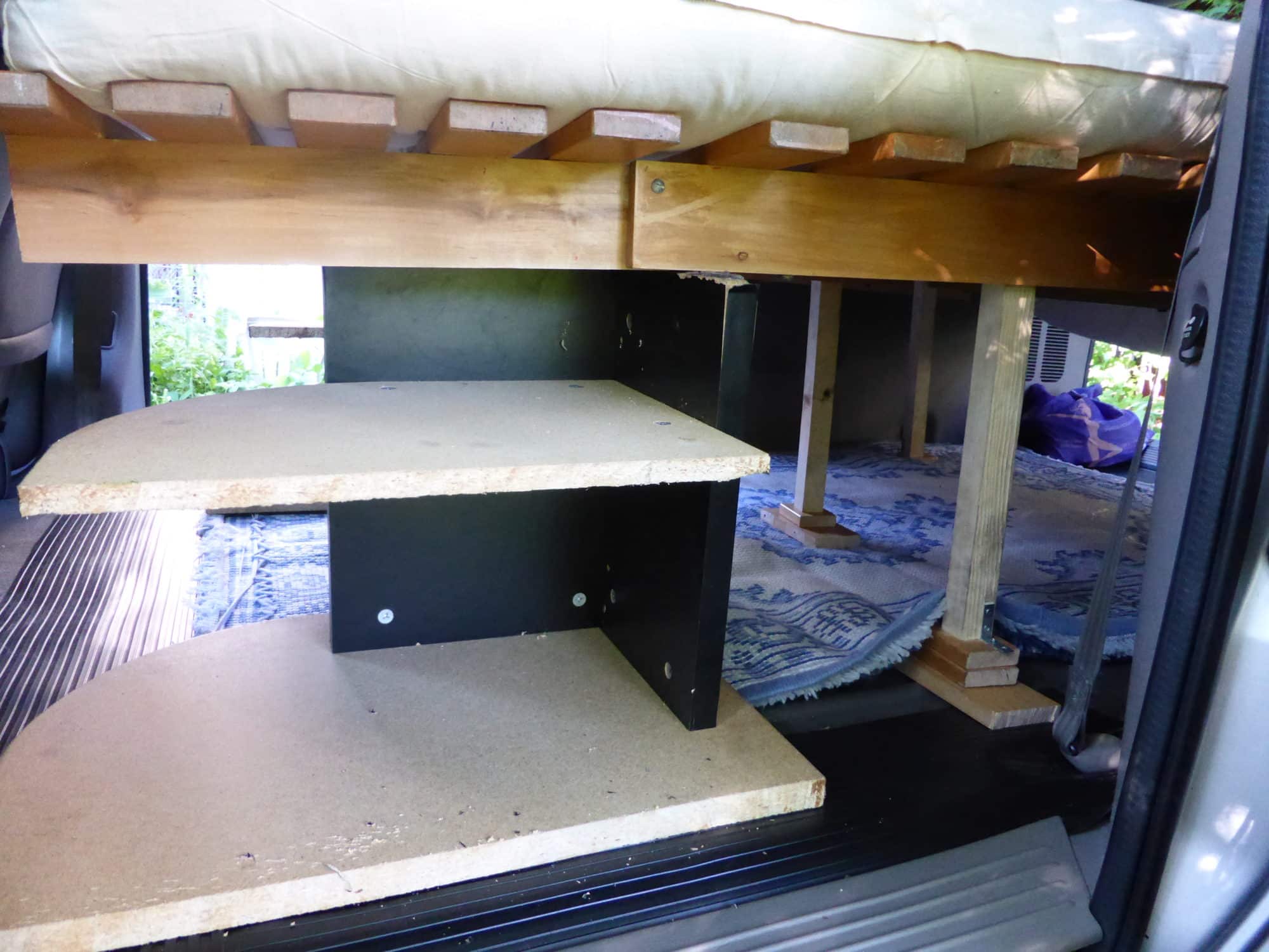 Etant équipé de 6 sièges, c’était purement un véhicule familial. Nous l’avons nous-même aménagé pour en faire notre maison. Là encore la chance a été de notre côté car le 1er juillet est la date de déménagement au Québec. Ainsi durant les semaines qui précèdent et qui suivent, nombre de meubles ou autre fournitures sont déposés devant les maisons et laissés à la disposition de qui veut… Aubaine pour nous pvtiste avec un petit budget, nous avons pu récupérer un meuble Tv qui nous a servi d’appui pour notre sommier mais aussi un tapis pour protéger le sol.