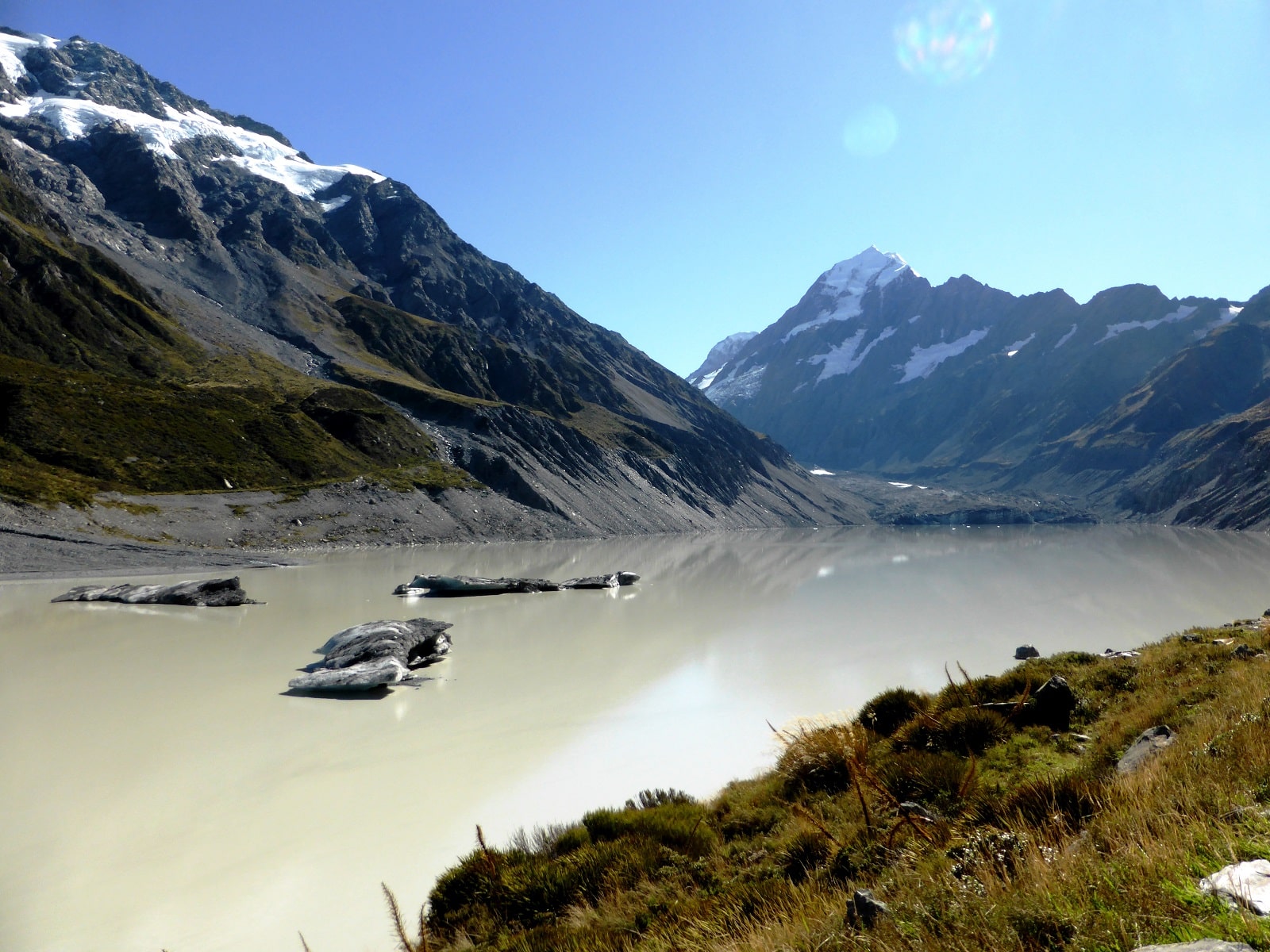 La première, celle de Tasman glacier et Blue lake. Elle dure environ 1 heure aller-retour et permet d’admirer la Tasman Valley ainsi que son glacier. Une belle ballade bien qu’assez fréquentée.