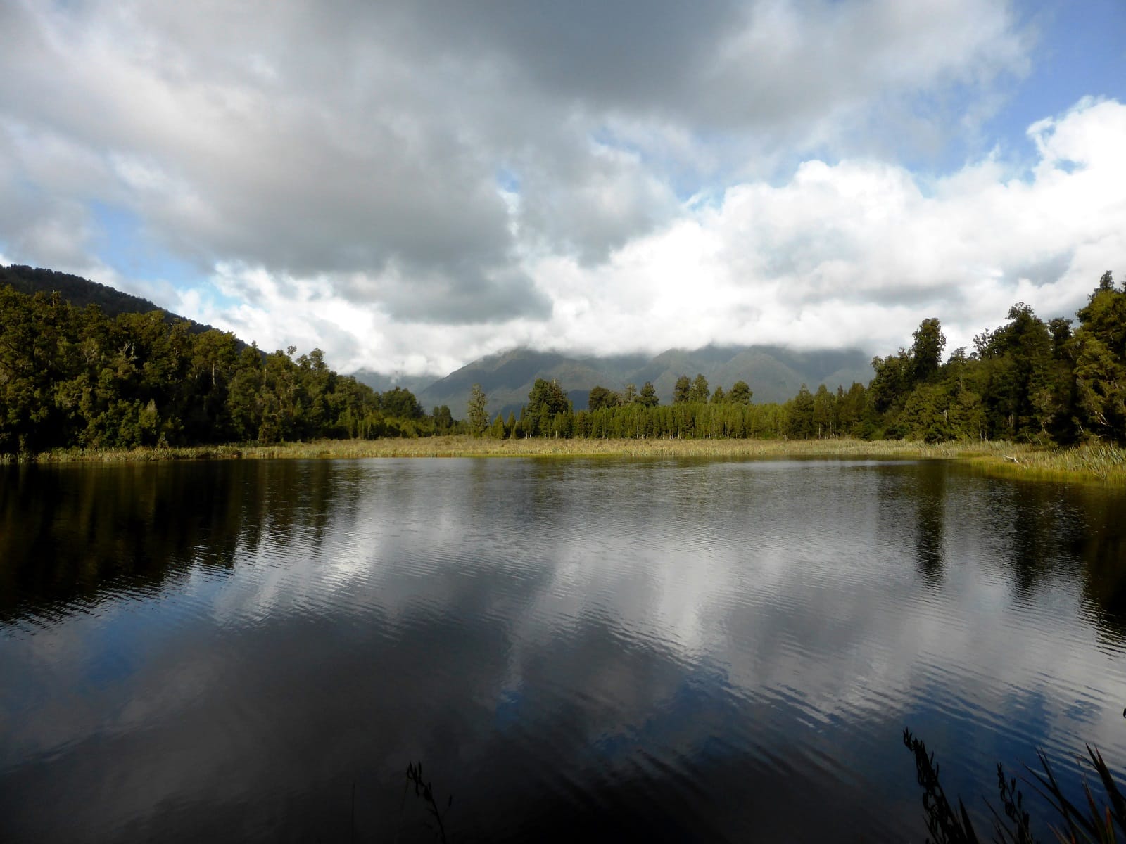 Ensuite, direction Fox Glacier et le fameux lac Matheson. Ce lac est connu pour son effet miroir qui permet par beau temps d’observer le reflet du Mont Cook et de la chaîne de montagne qui l’entoure. Le temps n’est pas tellement avec nous pour pouvoir observer ce phénomème, mais nous passons un très bon moment quand même!