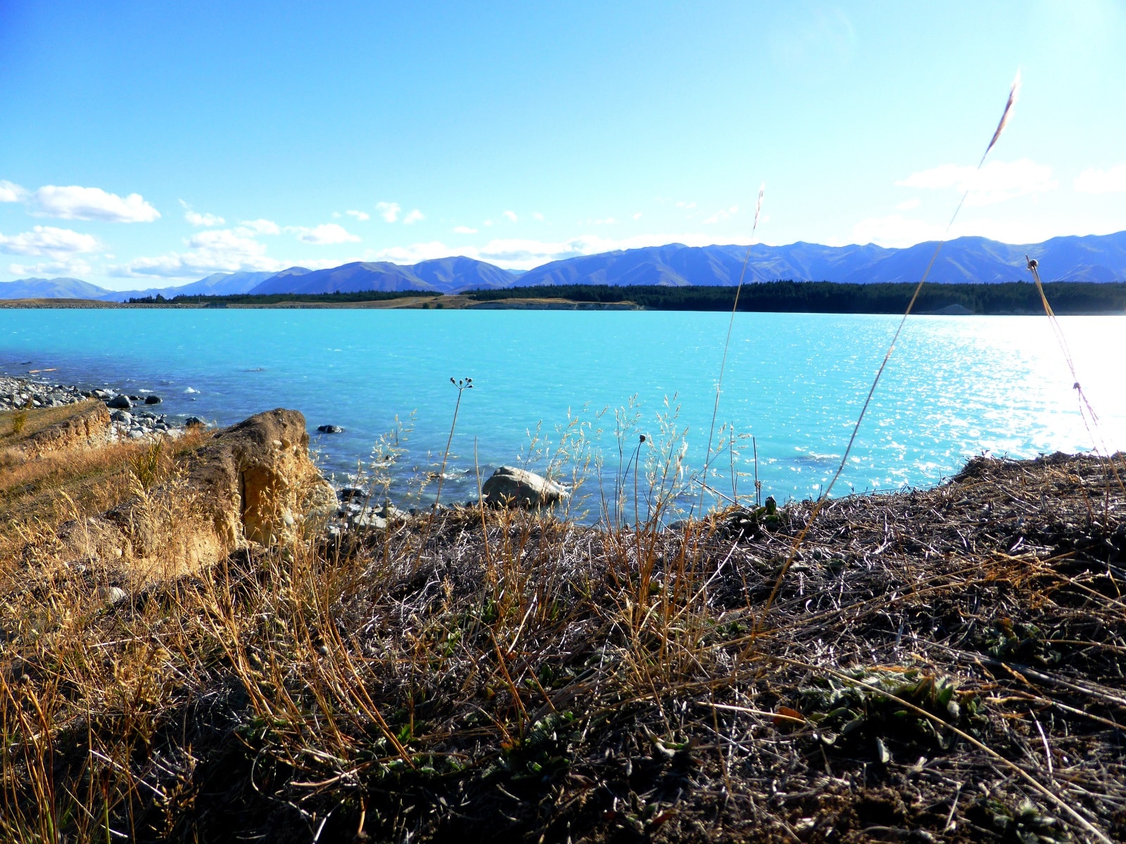 Arrivés en fin d’après-midi, nous décidons donc de nous arrêter au bord du Lac Pukaki pour passer la nuit. Là, se trouve un camping avec toilette sèche normalement réservé au self-contained. Mais vous pouvez tout de même tenter d’y rester, surtout en saison basse car les contrôles sont moins fréquents. Nous sommes restés deux nuits sans le moindre problème. La vue est superbe, le lac couleur turquoise laisse entrevoir le Mont Cook.