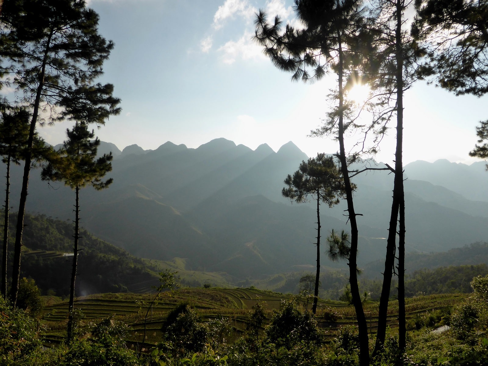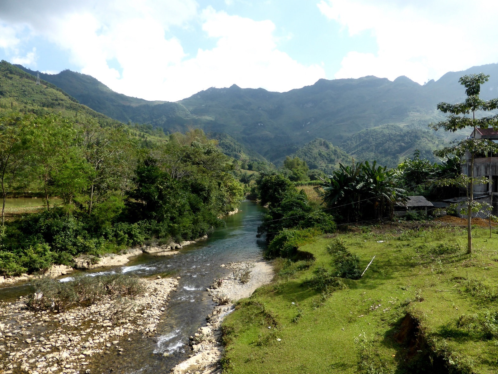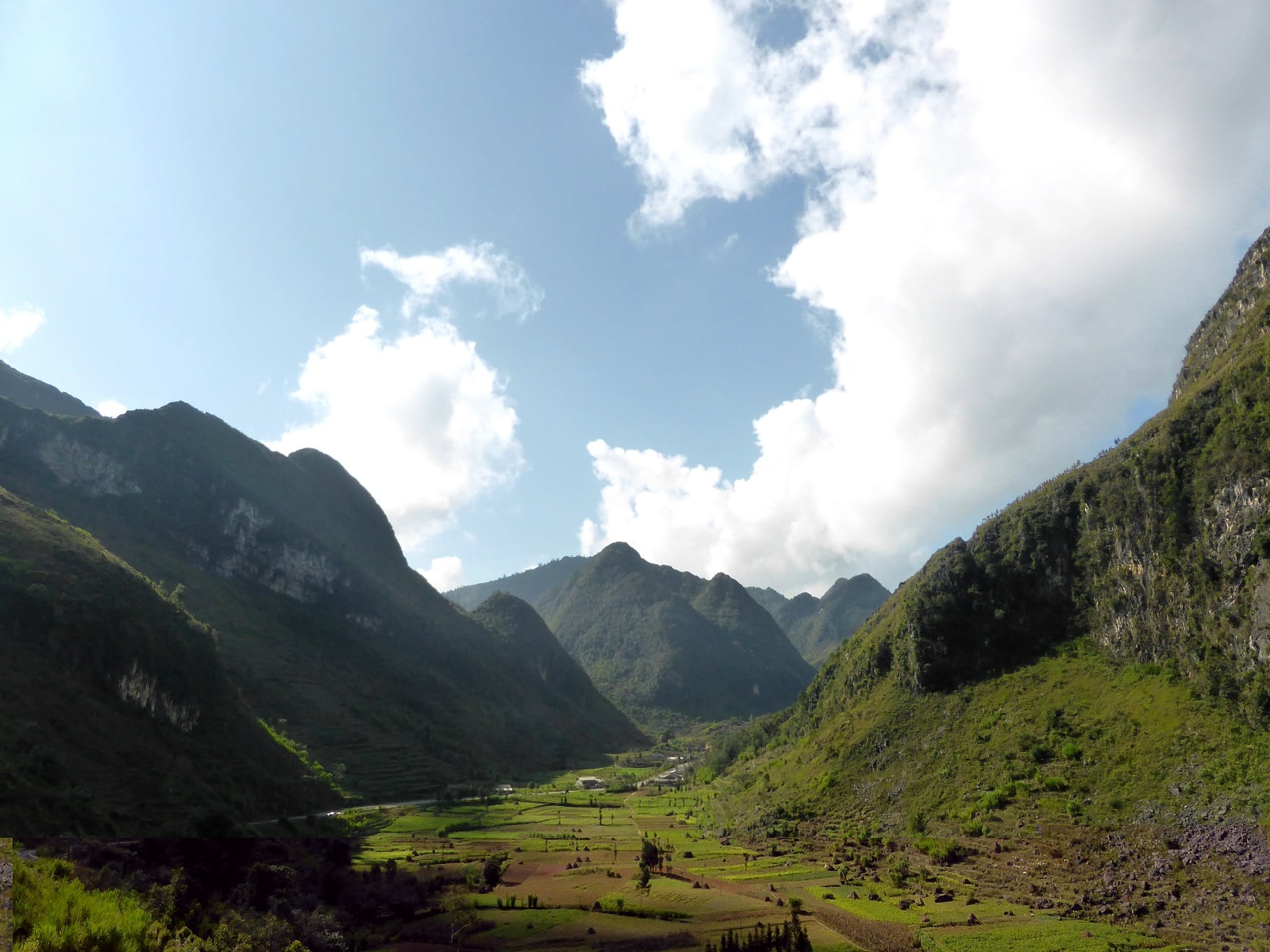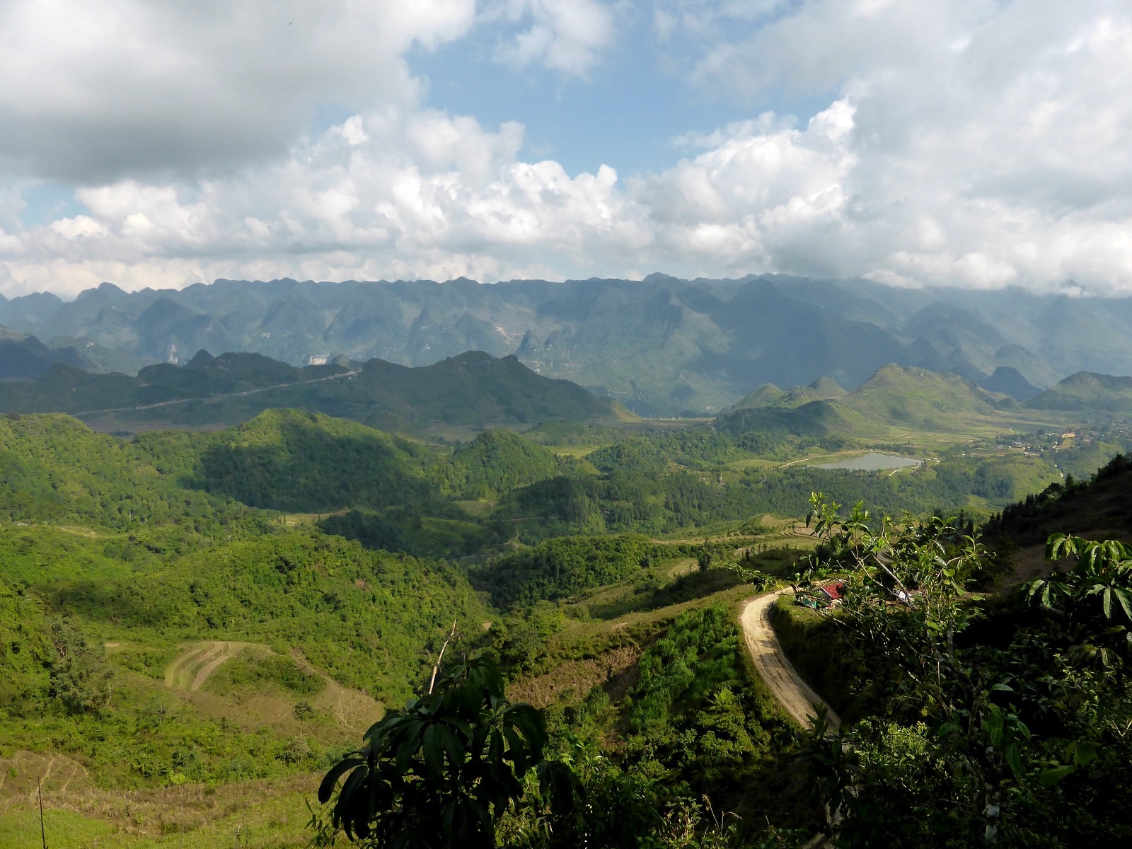 D’abord, une vallée verdoyante sillonnée de rivières et de rizières, puis, on attaque la montagne et ses nombreux pics.