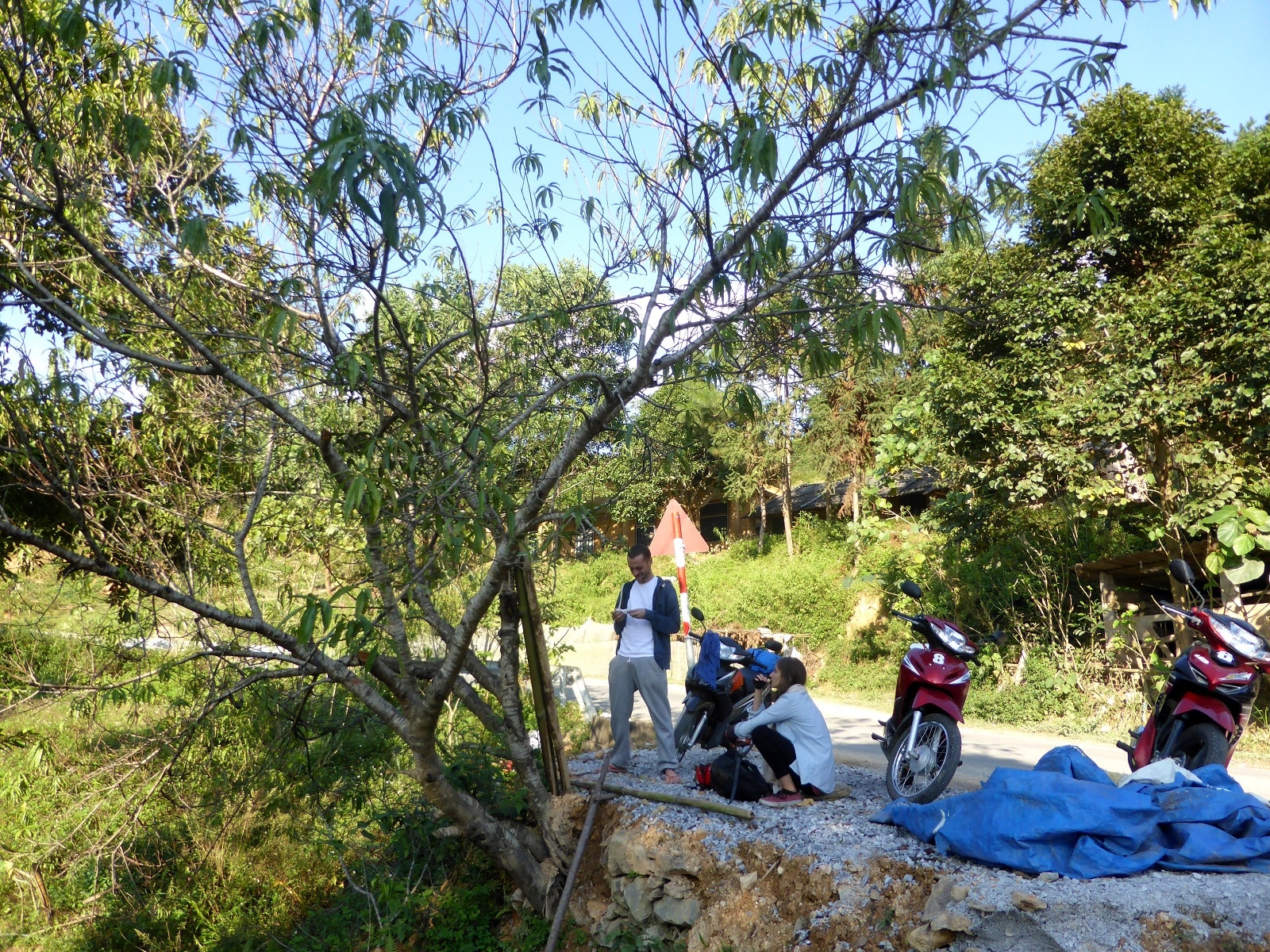 Stupeur! Comment trouver un hôtel sans posséder ce précieux permis? Il coûte 200000 dongs (environ 8 euros) et est censé être obtenu auprès de la préfecture d’Ha Giang. Finalement, après négociation, une auberge Na Ma Motel accepte de nous louer une chambre pour la nuit à condition de payer un supplément de 50 000 chacun. Le propriétaire nous fait comprendre qu’il risque la prison… Cette acceptation rapide pour une si petite somme nous fait douter de l’obligation d’obtenir un tel permis, mais on ne saura jamais le vrai du faux…