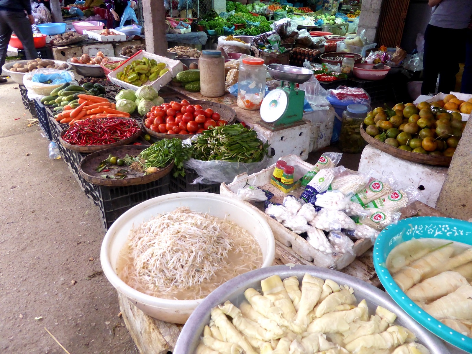 Nous restons pour manger et testons les plats locaux, tous excellents! Beignet de riz et de viande, riz collant sucré, soupes, bananes, clémentines, il y en a vraiment pour tous les goûts! Encore une fois, nous sommes les seuls occidentaux et ça on adore! Le vrai voyage au coeur d’une nouvelle culture et l’aventure !