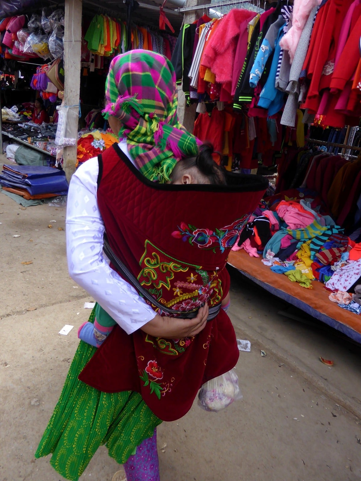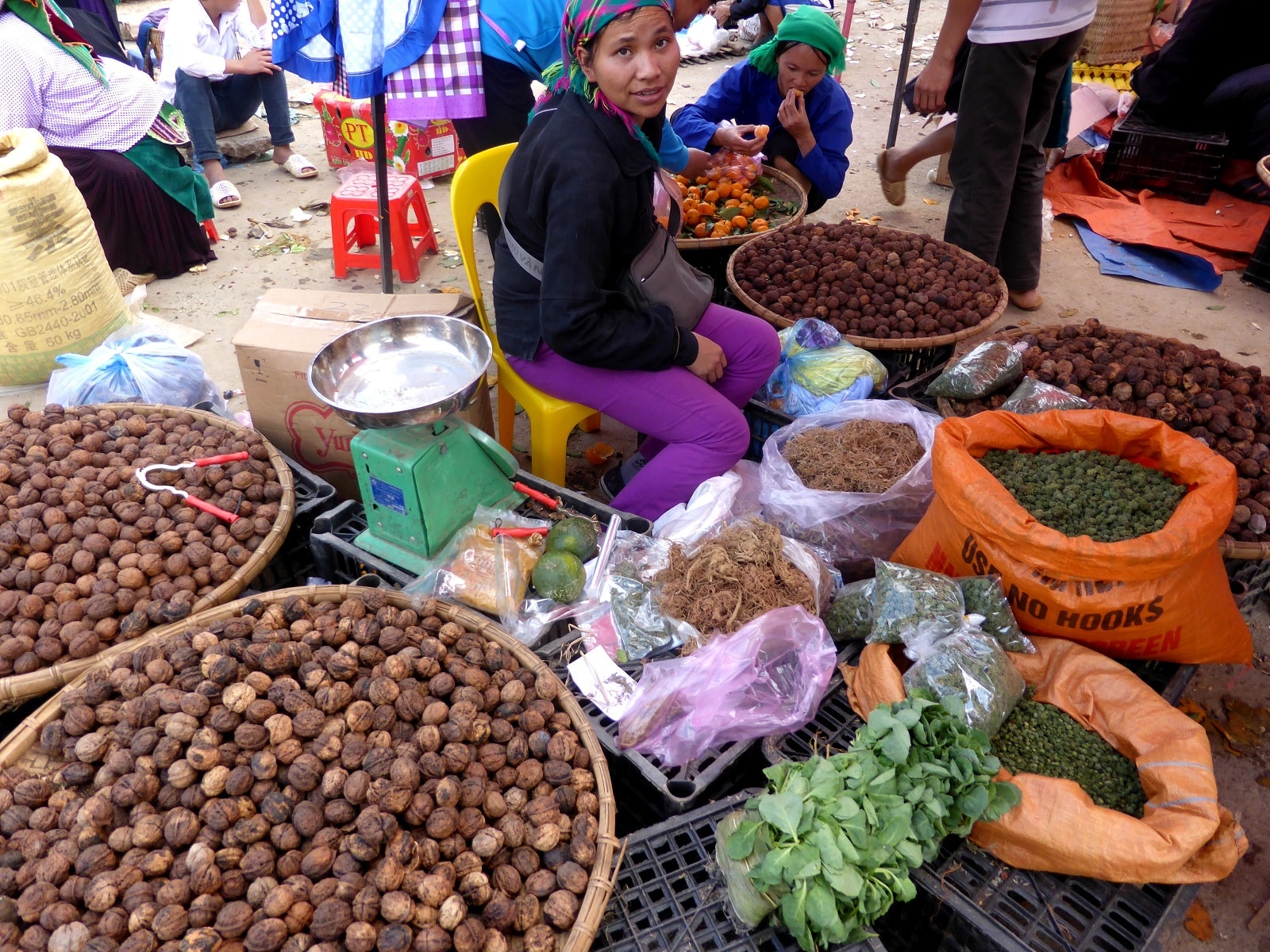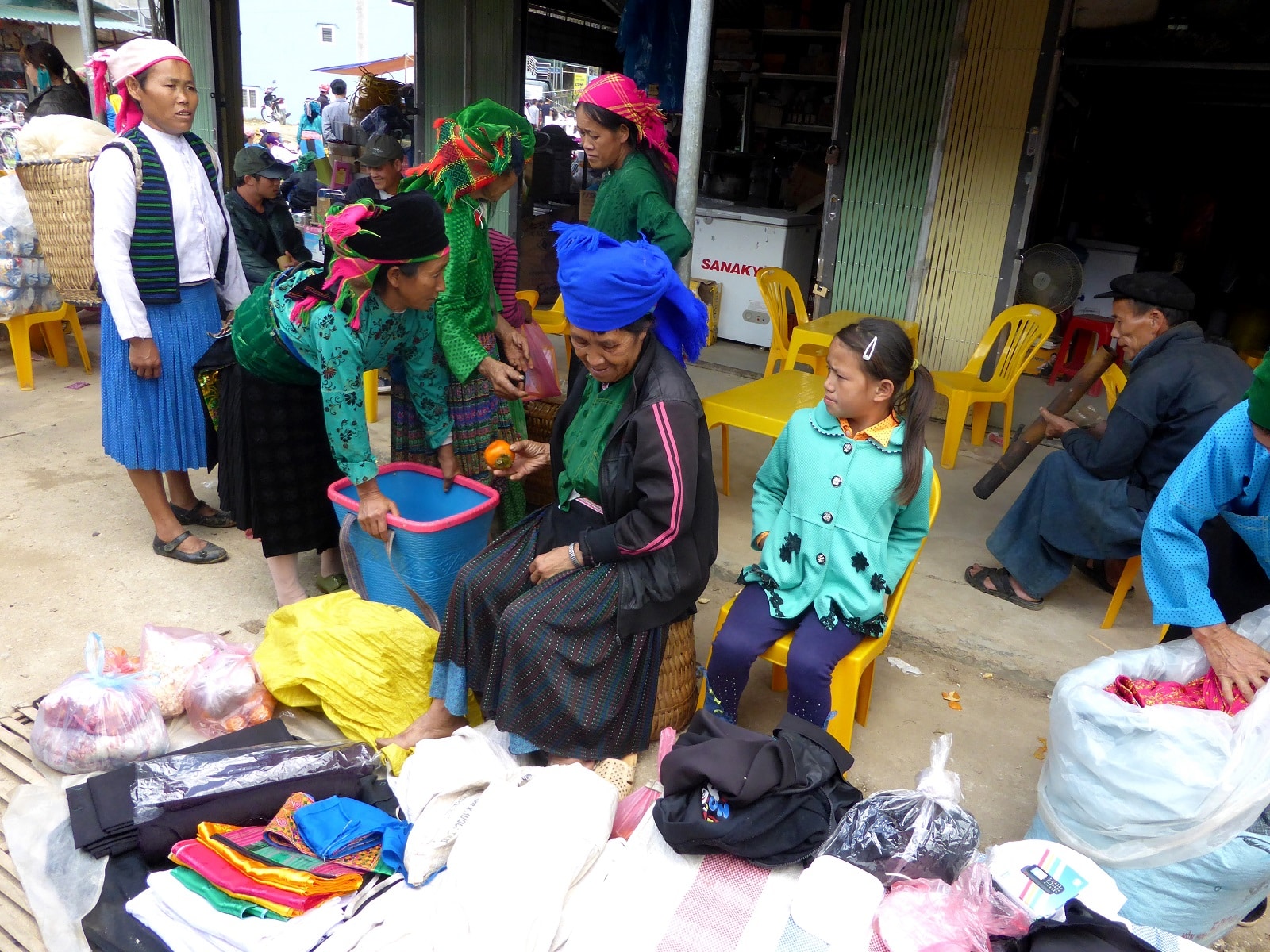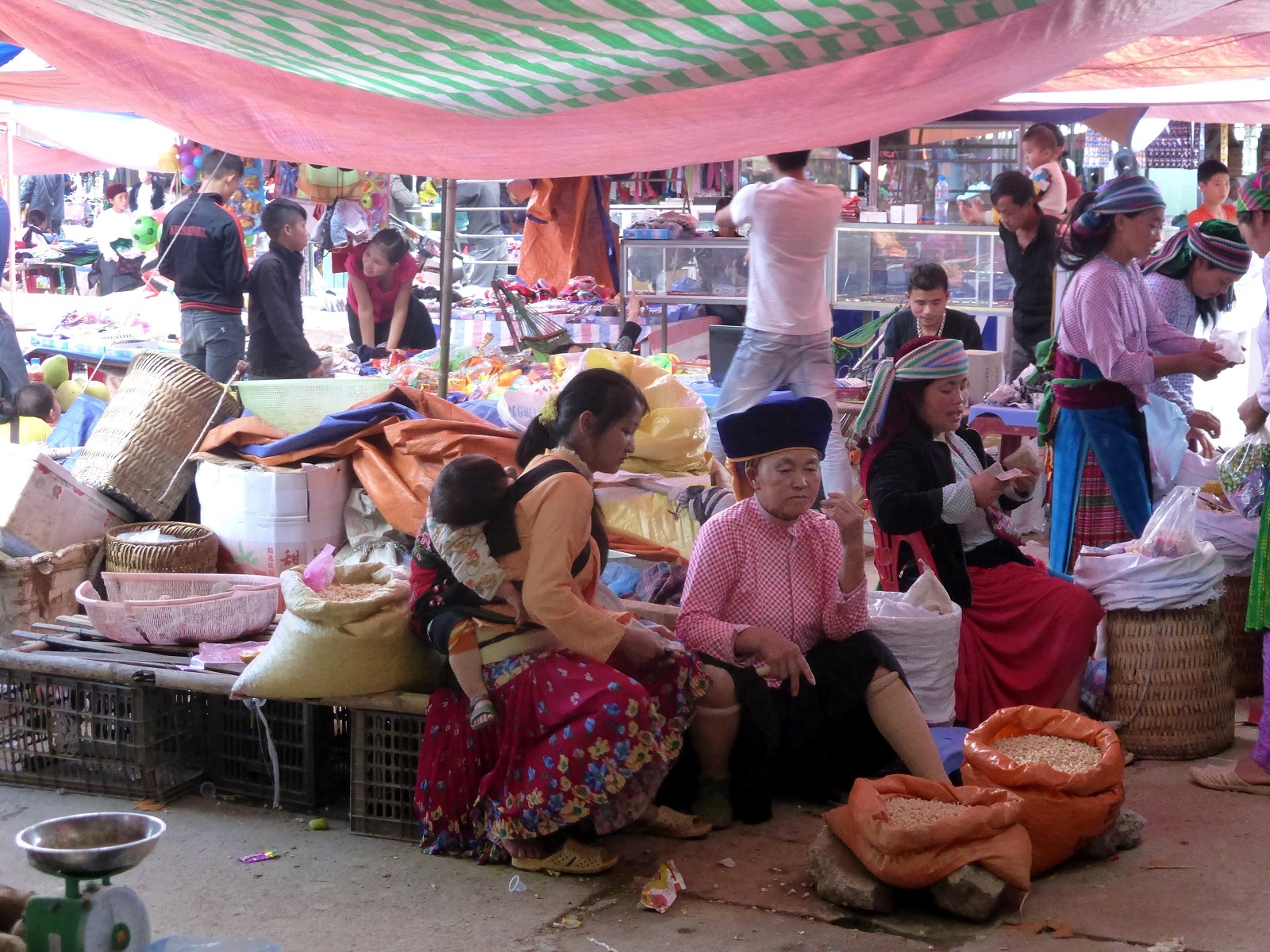 Sur les coups de midi nous arrivons au marché. On y trouve de tout, les h’mongs s’y rendent à pied pour vendre le fruit de leur travail : riz, bétail, artisanat local.