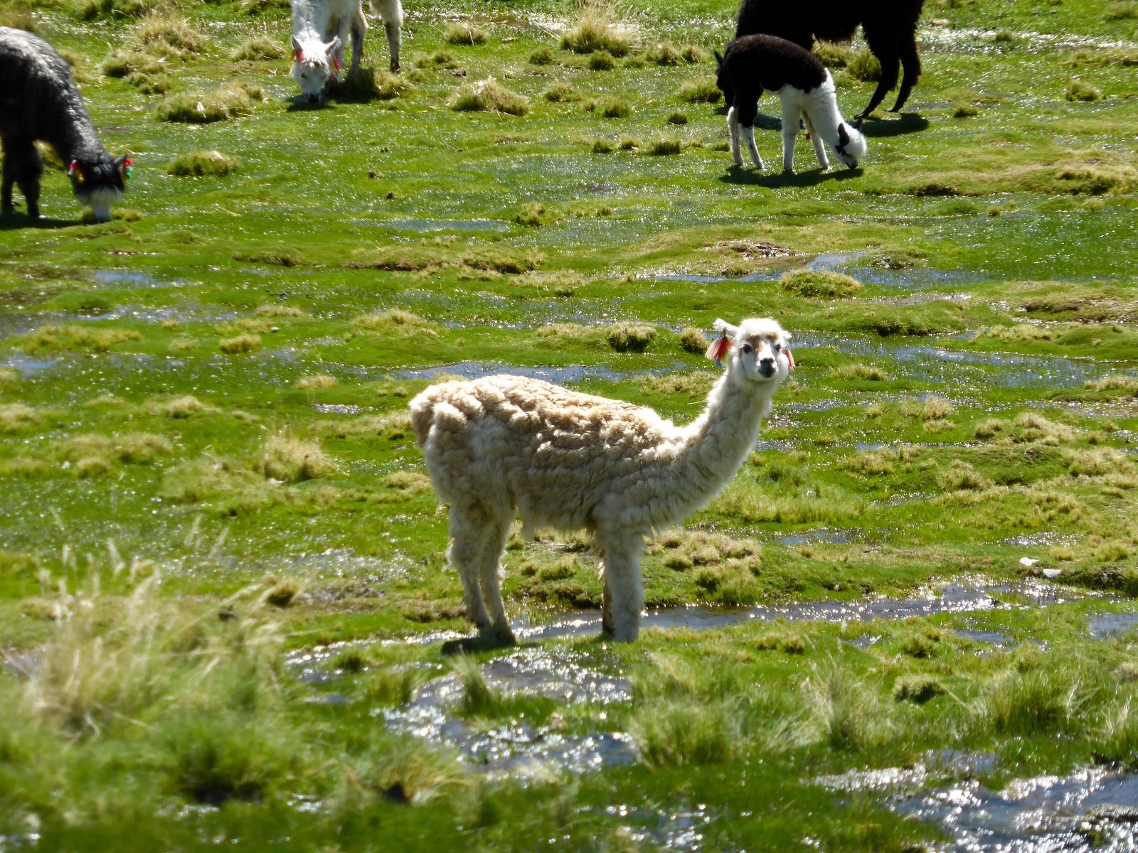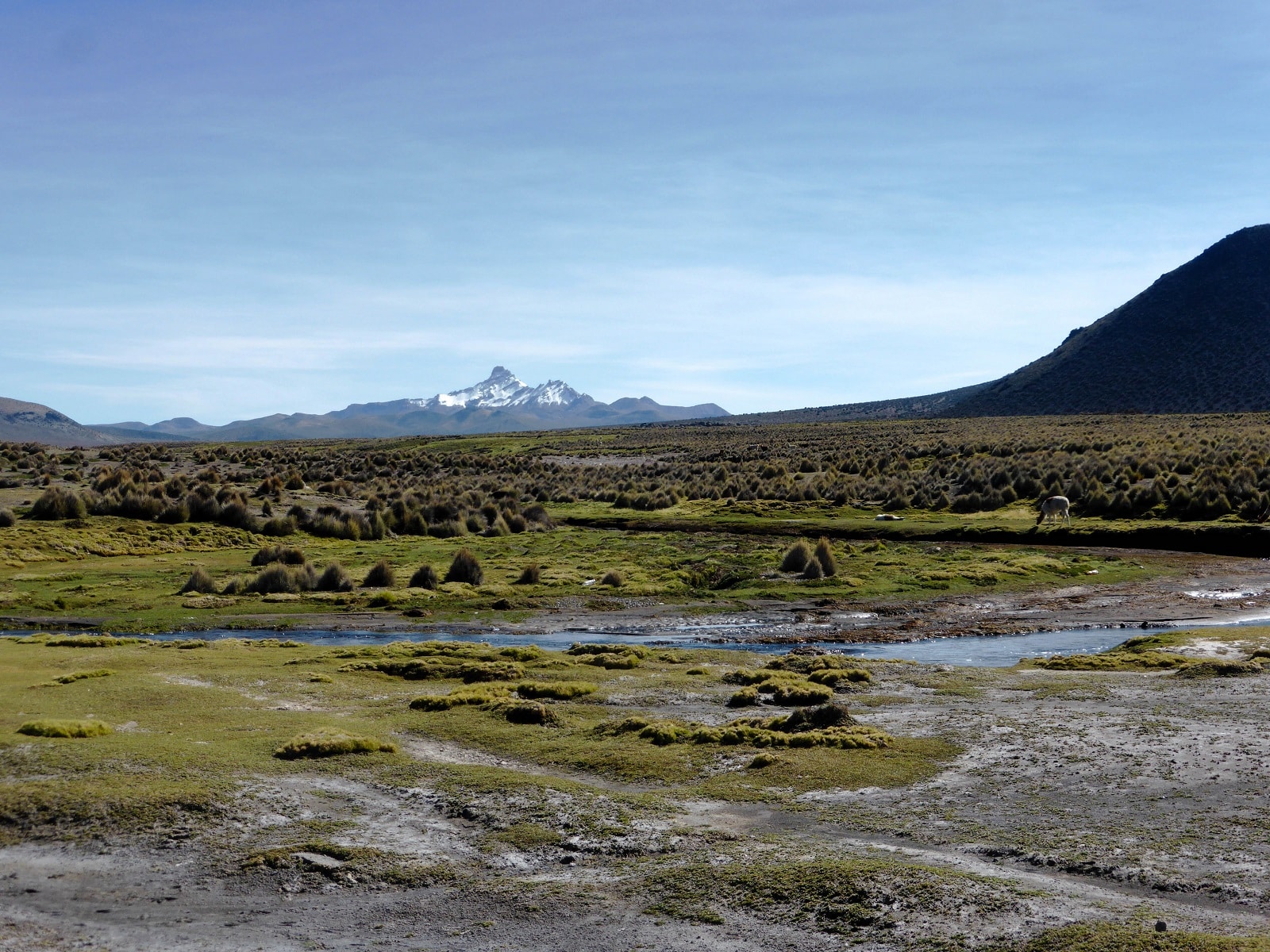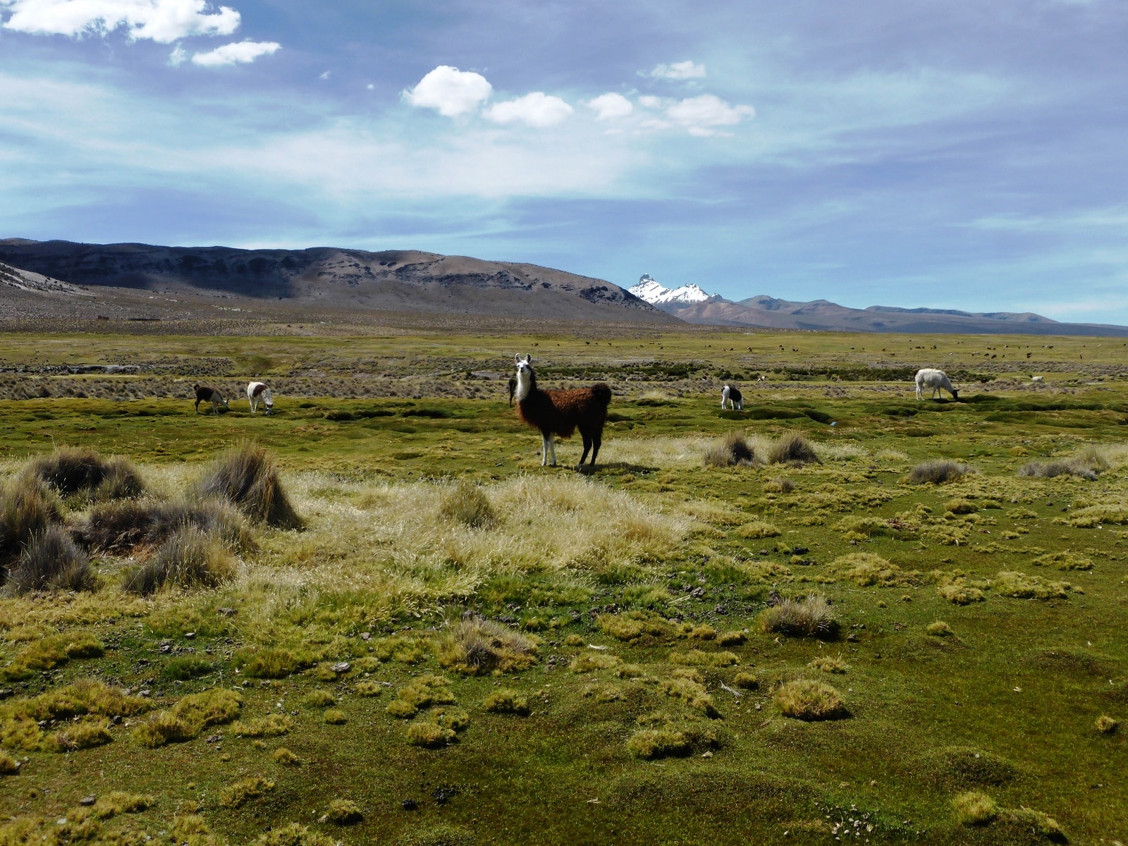 Les paysages sont grandioses, les montagnes au fond, et au premier plan des lamas, alpagas et autres vigognes tranquillement installés au bord des ruisseaux. Dès les premiers pas, on se régale !