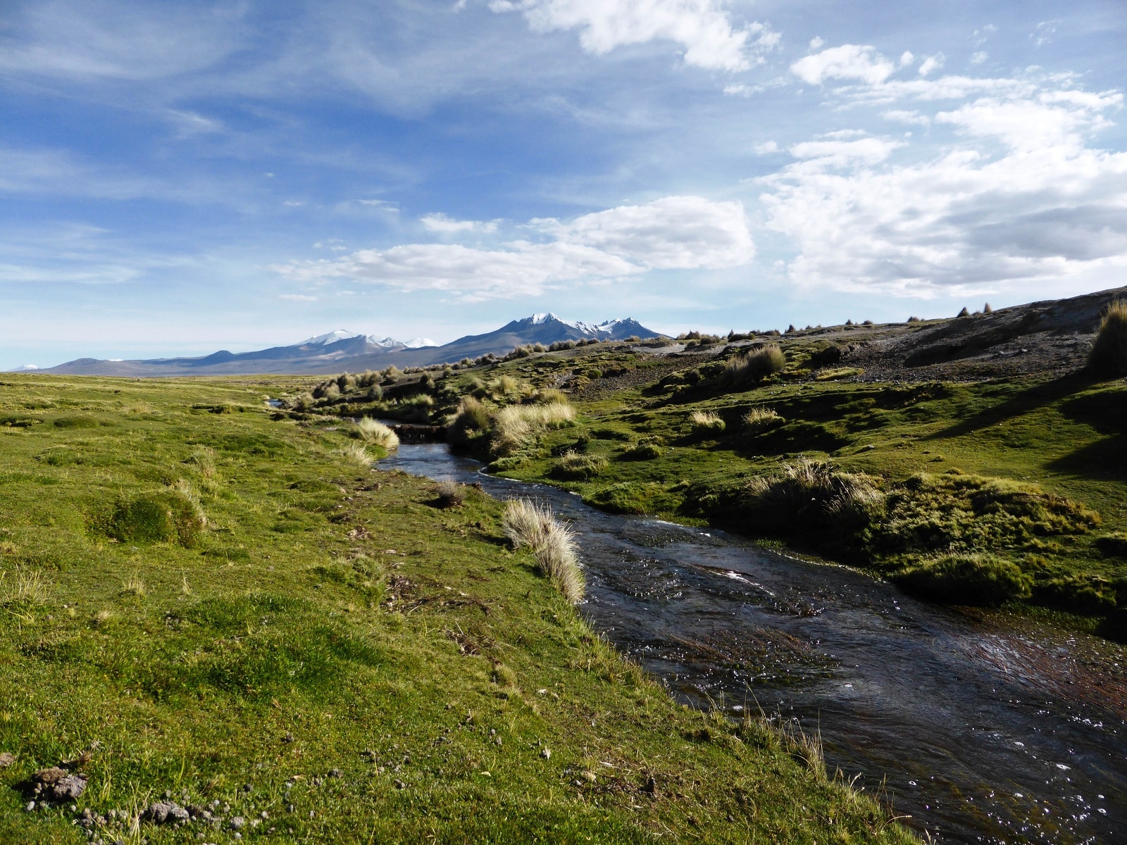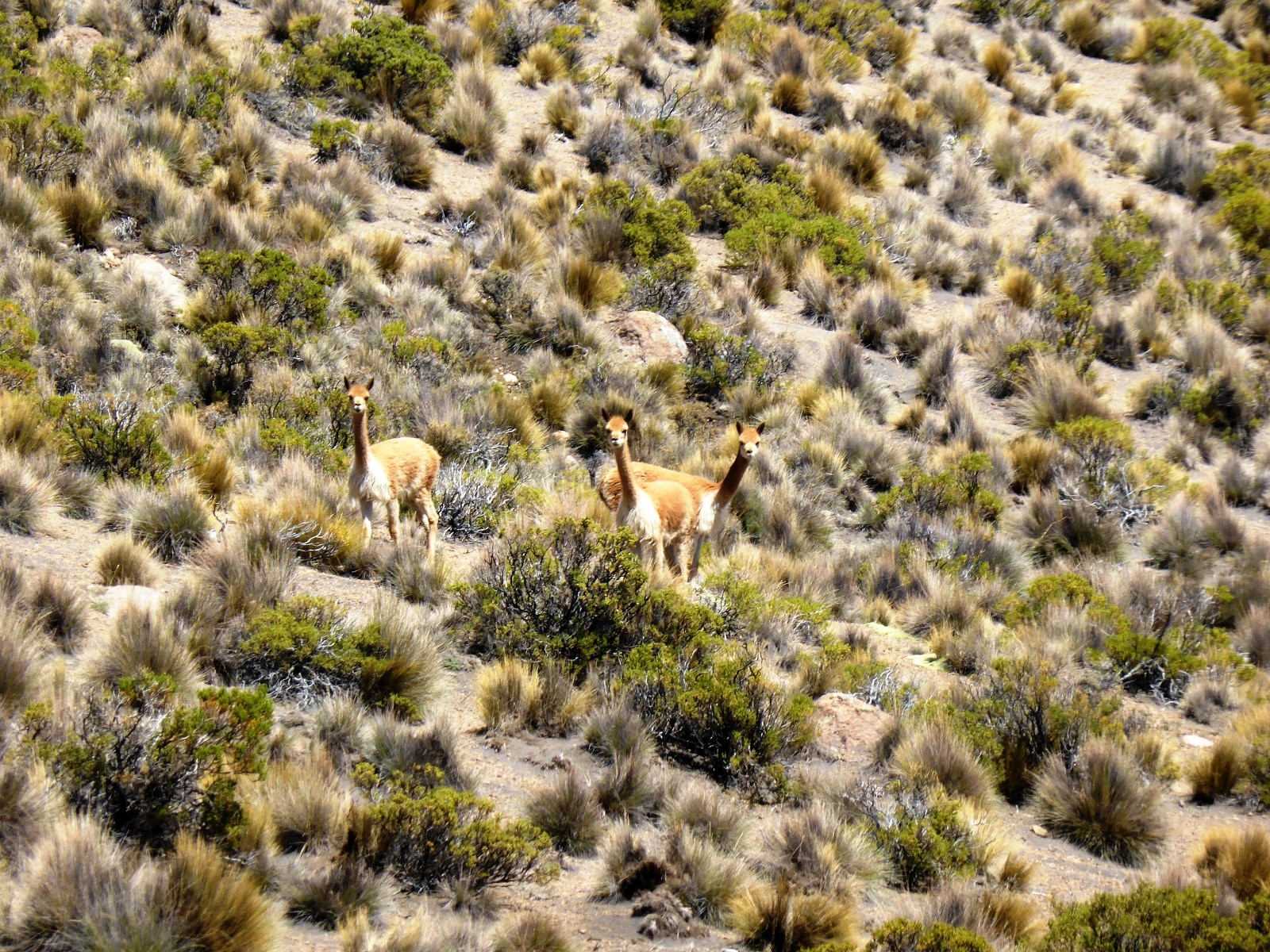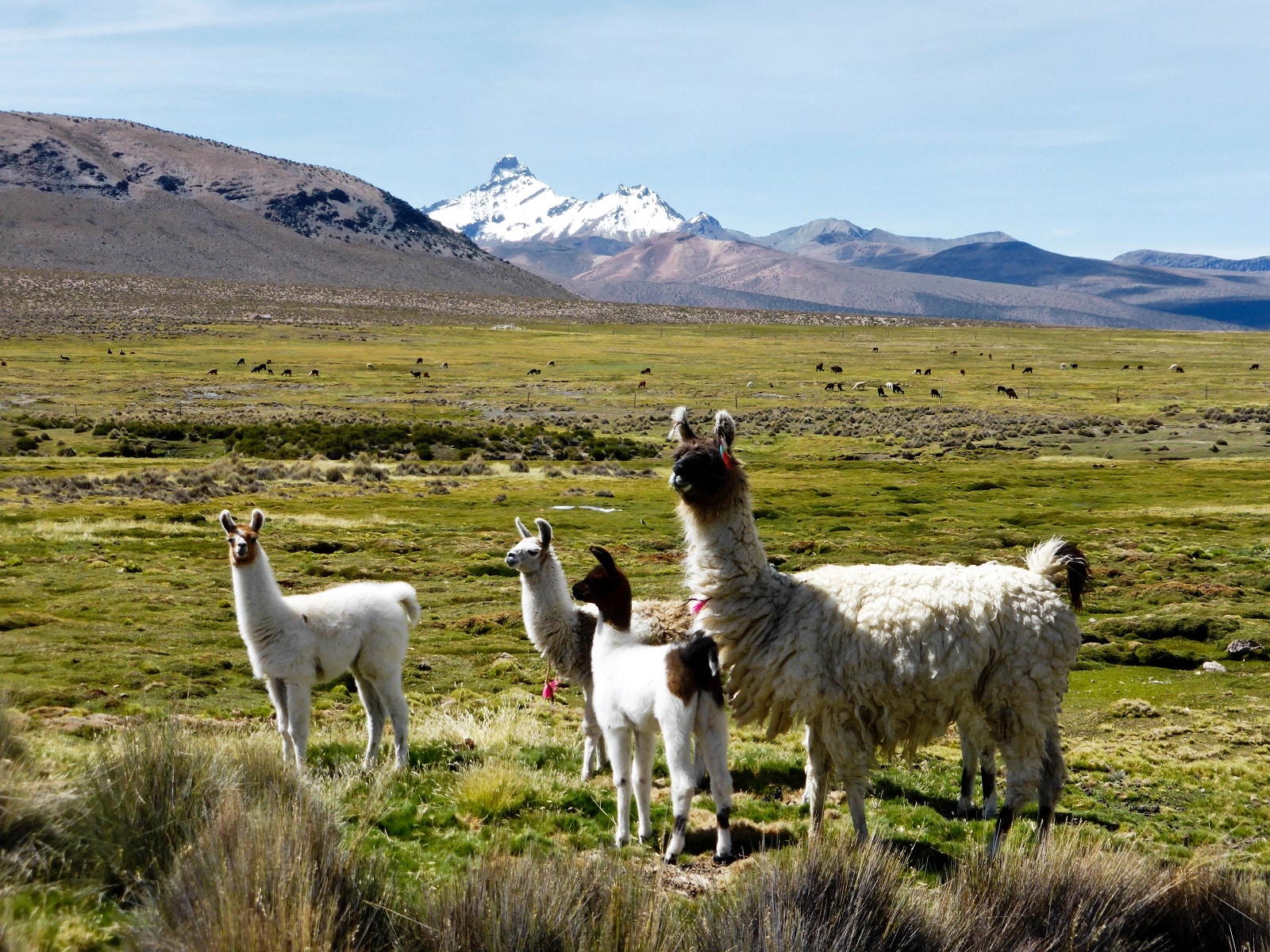 Les paysages sont grandioses, les montagnes au fond, et au premier plan des lamas, alpagas et autres vigognes tranquillement installés au bord des ruisseaux. Dès les premiers pas, on se régale !