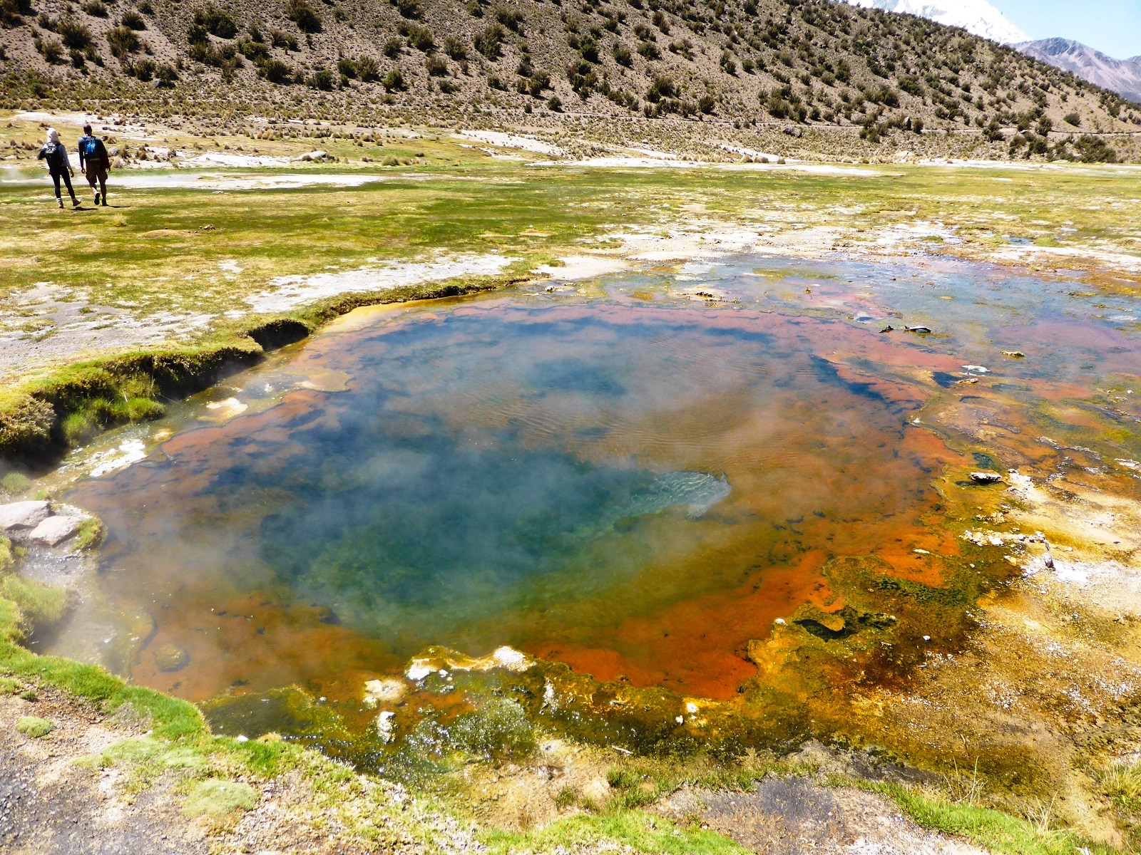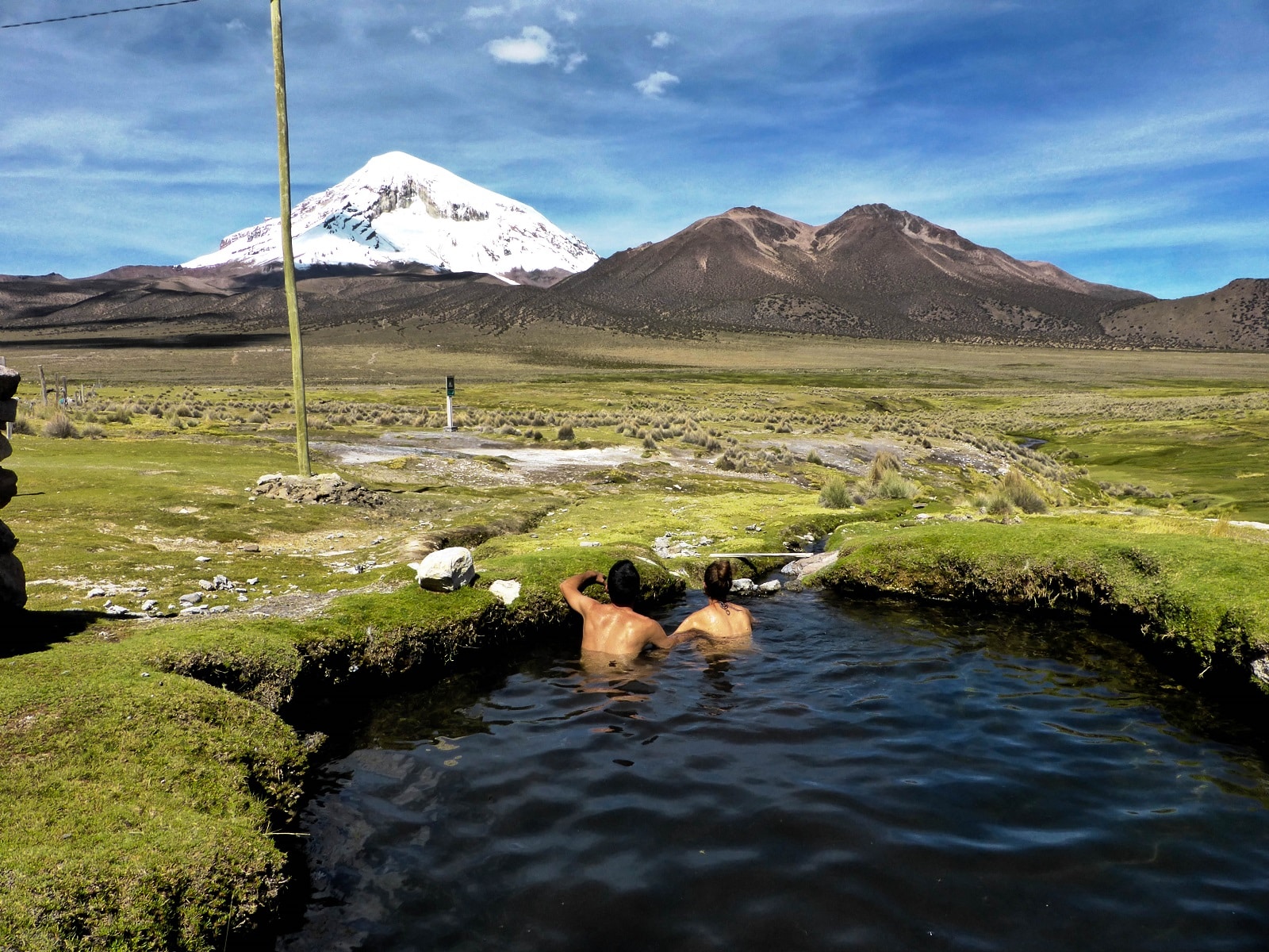 Un bon bain chaud dans une piscine naturelle face au volcan Sajama !