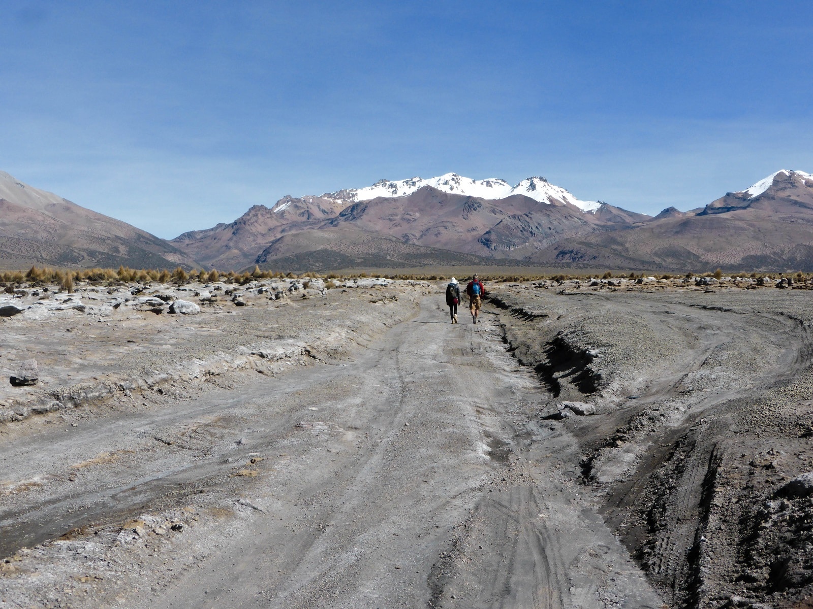 On part là aussi, tôt le matin, en direction de la lagune à 12 km du petit village. Ici, le chemin n’est pas vraiment fun puisque vous suivrez la route tout du long. Après 3 heures de marche nous arrivons sur place. Malheureusement, il n’y a pas de flamands roses et nous sommes un peu déçu par le paysage. Pas grave c’est quand même chouette de se balader seuls au monde à 4300 mètres d’altitude. Puis, nous retournons au village en fin de journée, crevés par ces 25 km de marche.