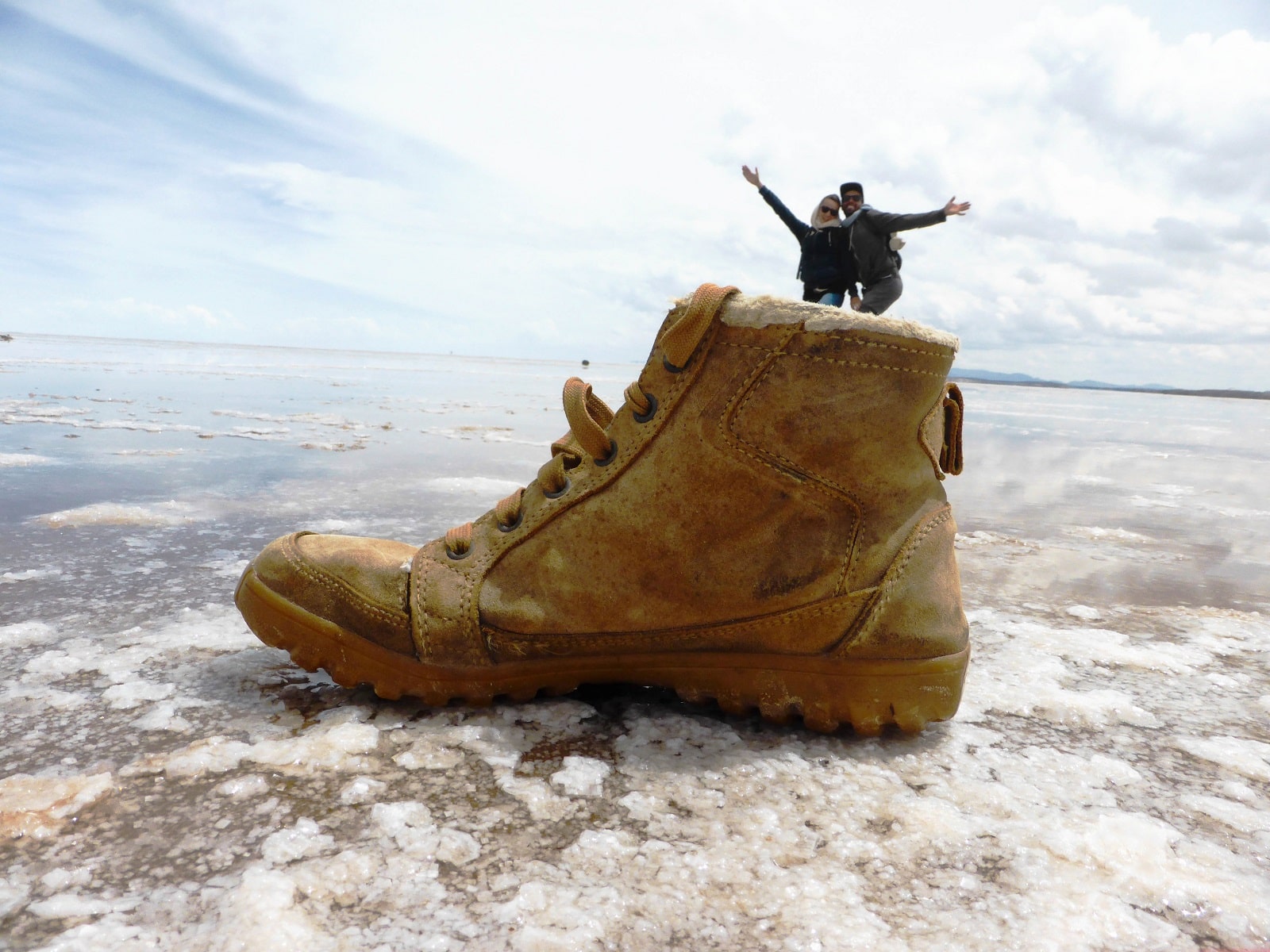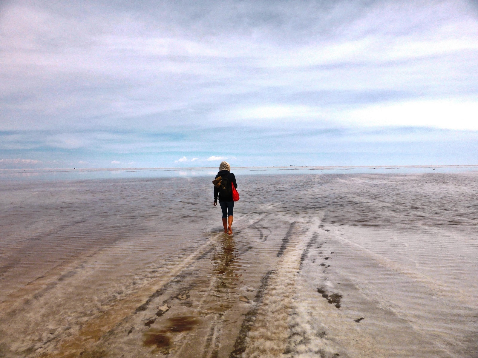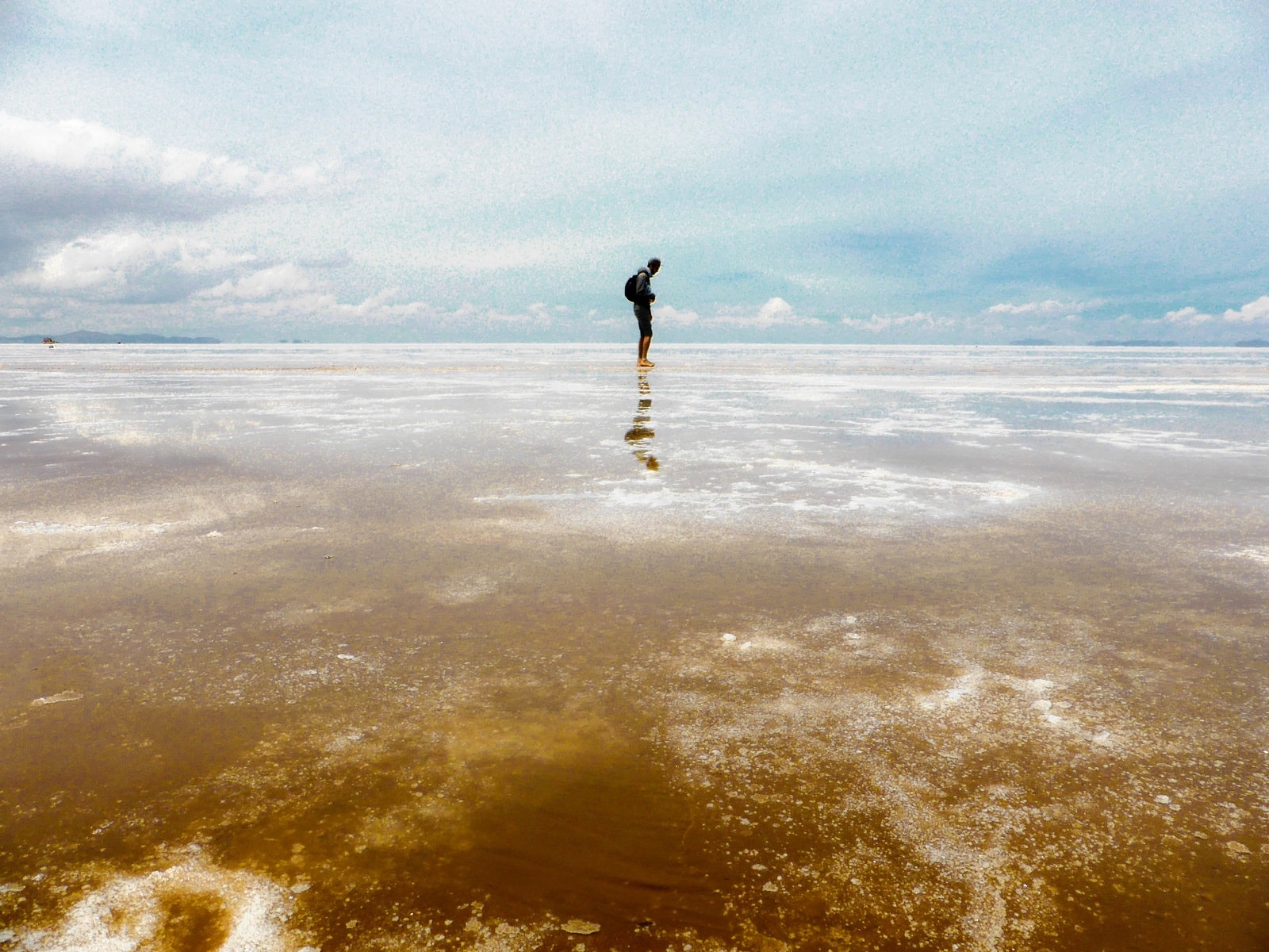 Marcher seuls dans le Salar rempli d’eau!